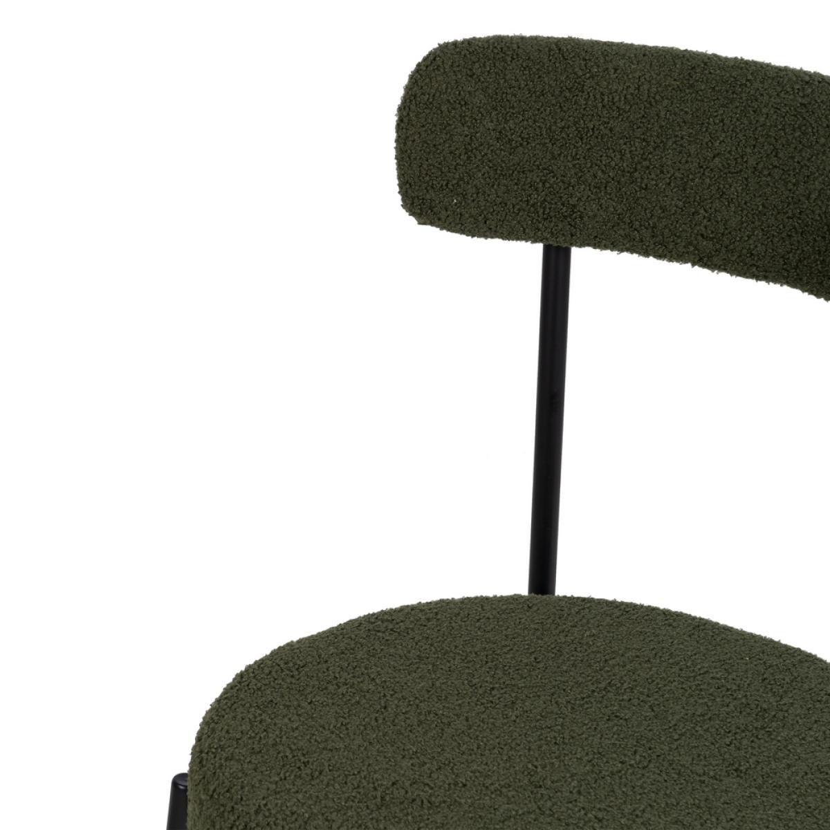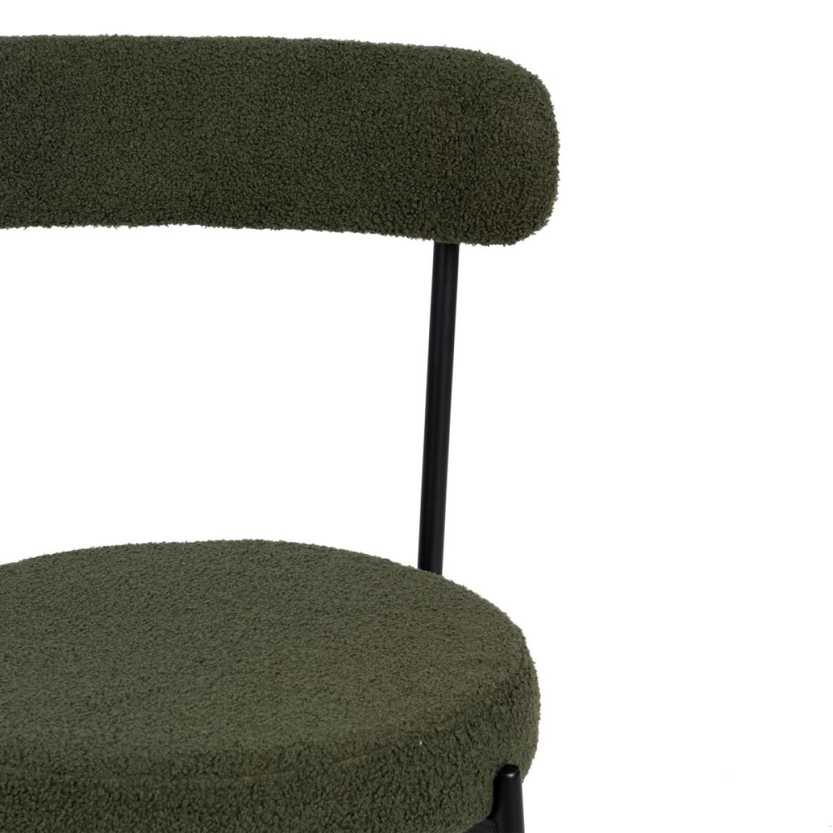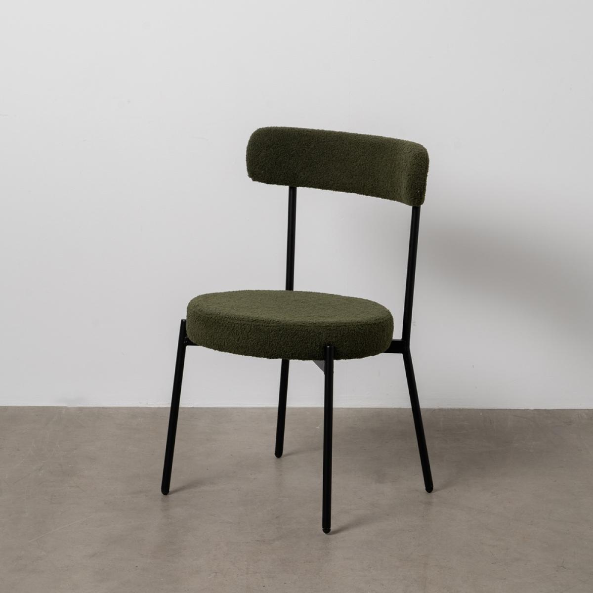 SILLA VERDE-NEGRO TEJIDO-METAL 49 X 49 X 80 CM Material: hierro - tejido - madera conglomerada - foam. Tejido: 100% poliéster Medida asiento: 45 cm. de diámetro - 8 cm. grueso. Altura respaldo: 38cm. Altura asiento: 46cm. Altura pata: 39cm. Precisa montaje. Cumple normativa: EN16139:2013 No apilable.