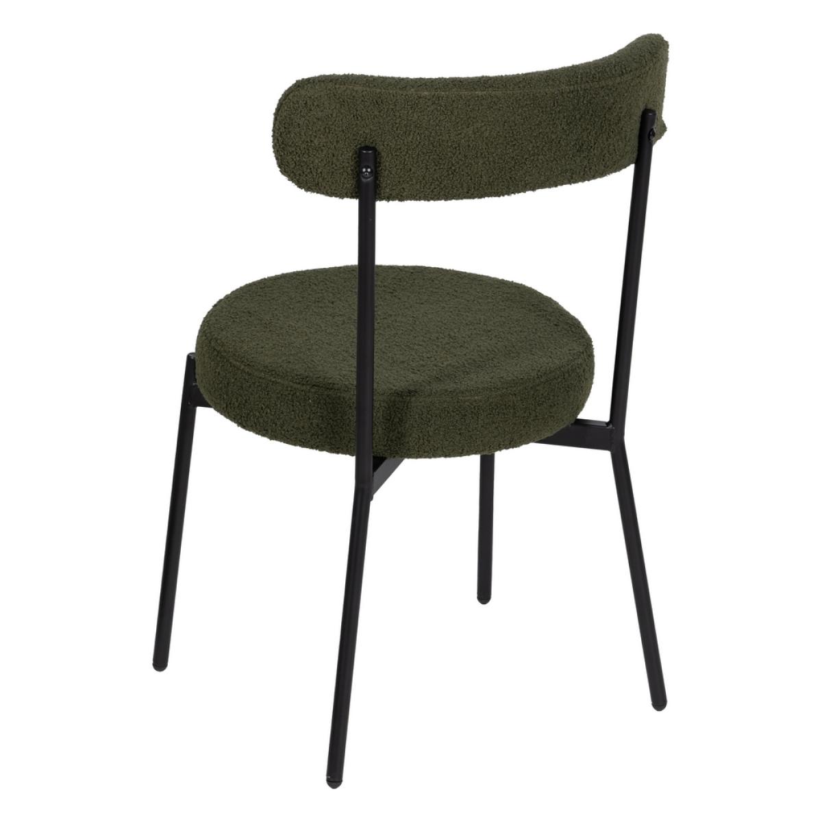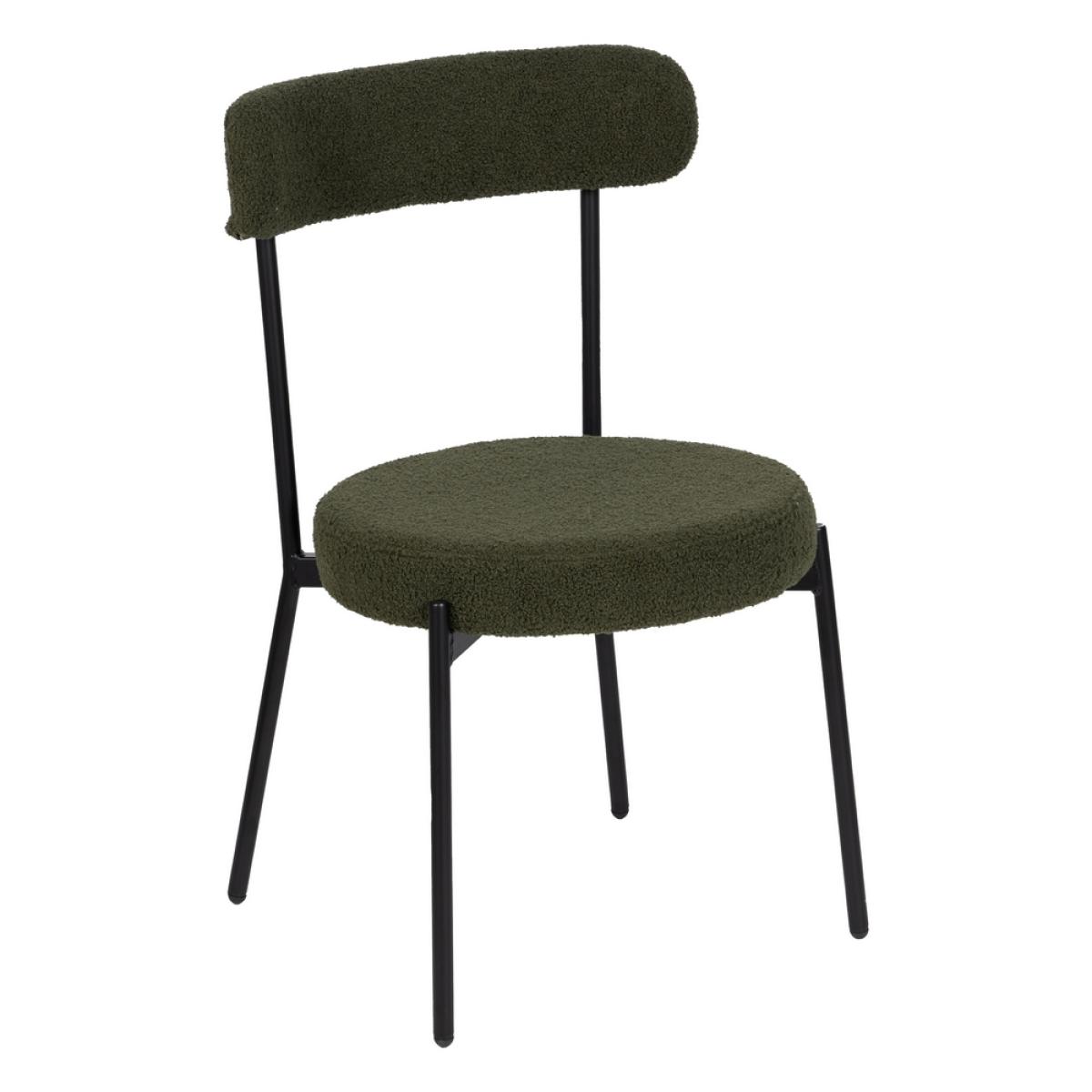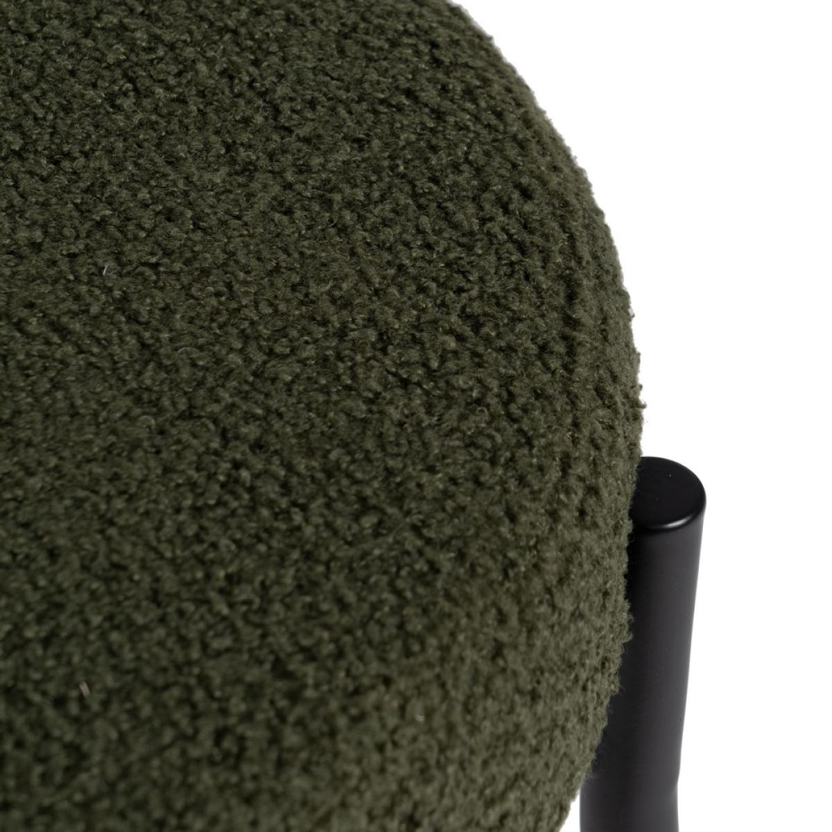 SILLA VERDE-NEGRO TEJIDO-METAL 49 X 49 X 80 CM Material: hierro - tejido - madera conglomerada - foam. Tejido: 100% poliéster Medida asiento: 45 cm. de diámetro - 8 cm. grueso. Altura respaldo: 38cm. Altura asiento: 46cm. Altura pata: 39cm. Precisa montaje. Cumple normativa: EN16139:2013 No apilable.