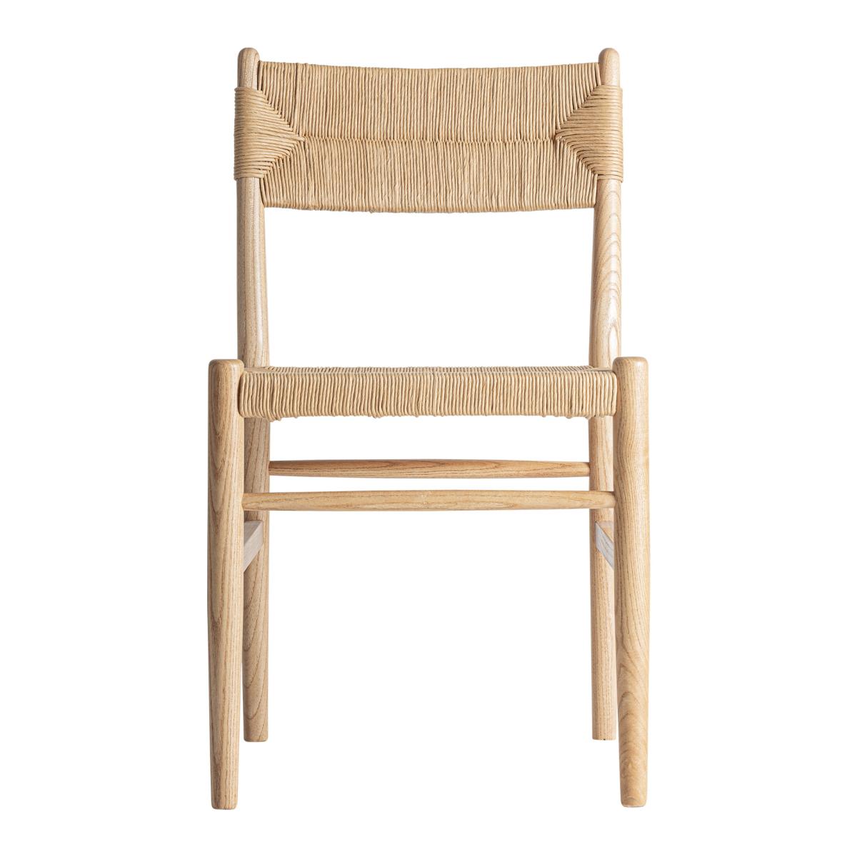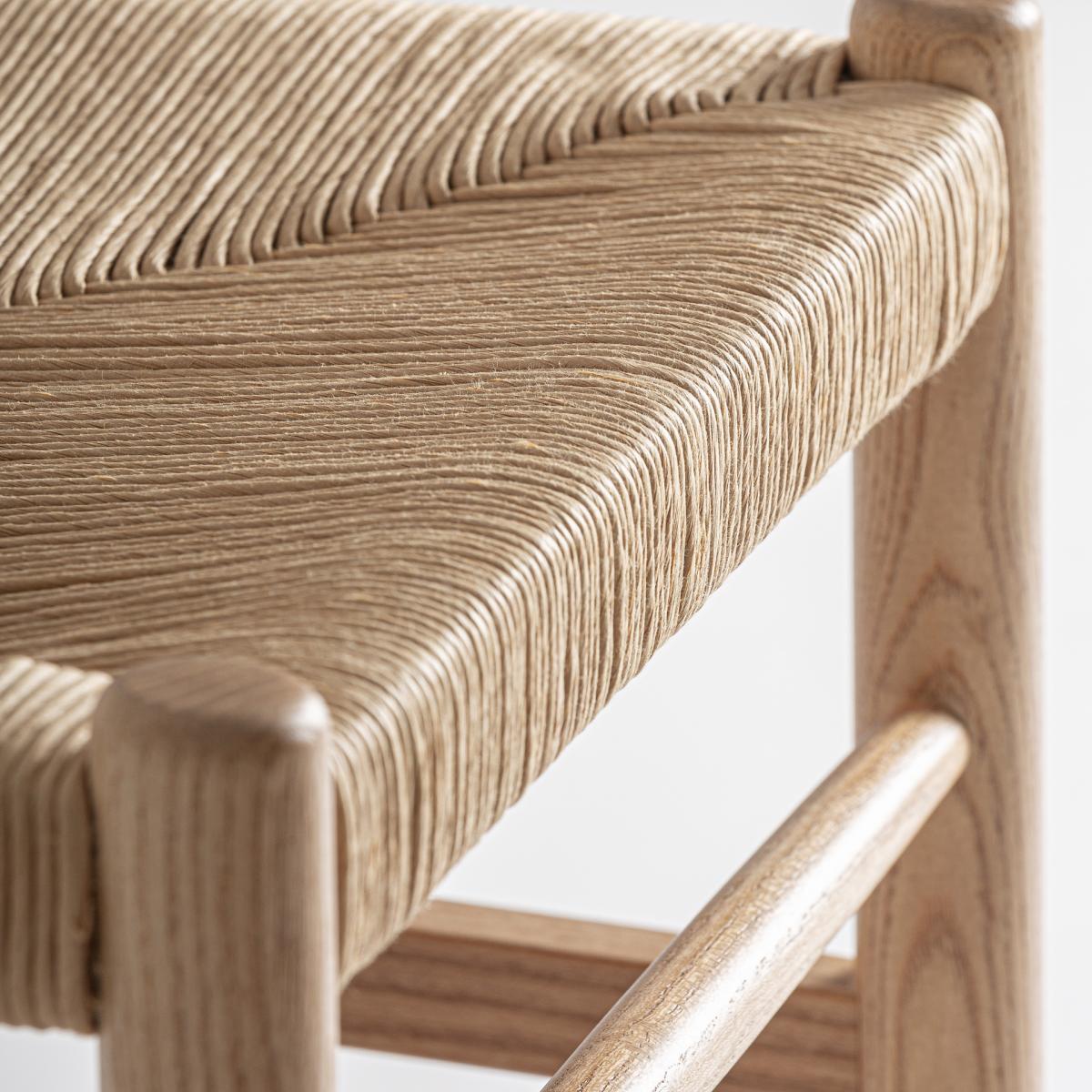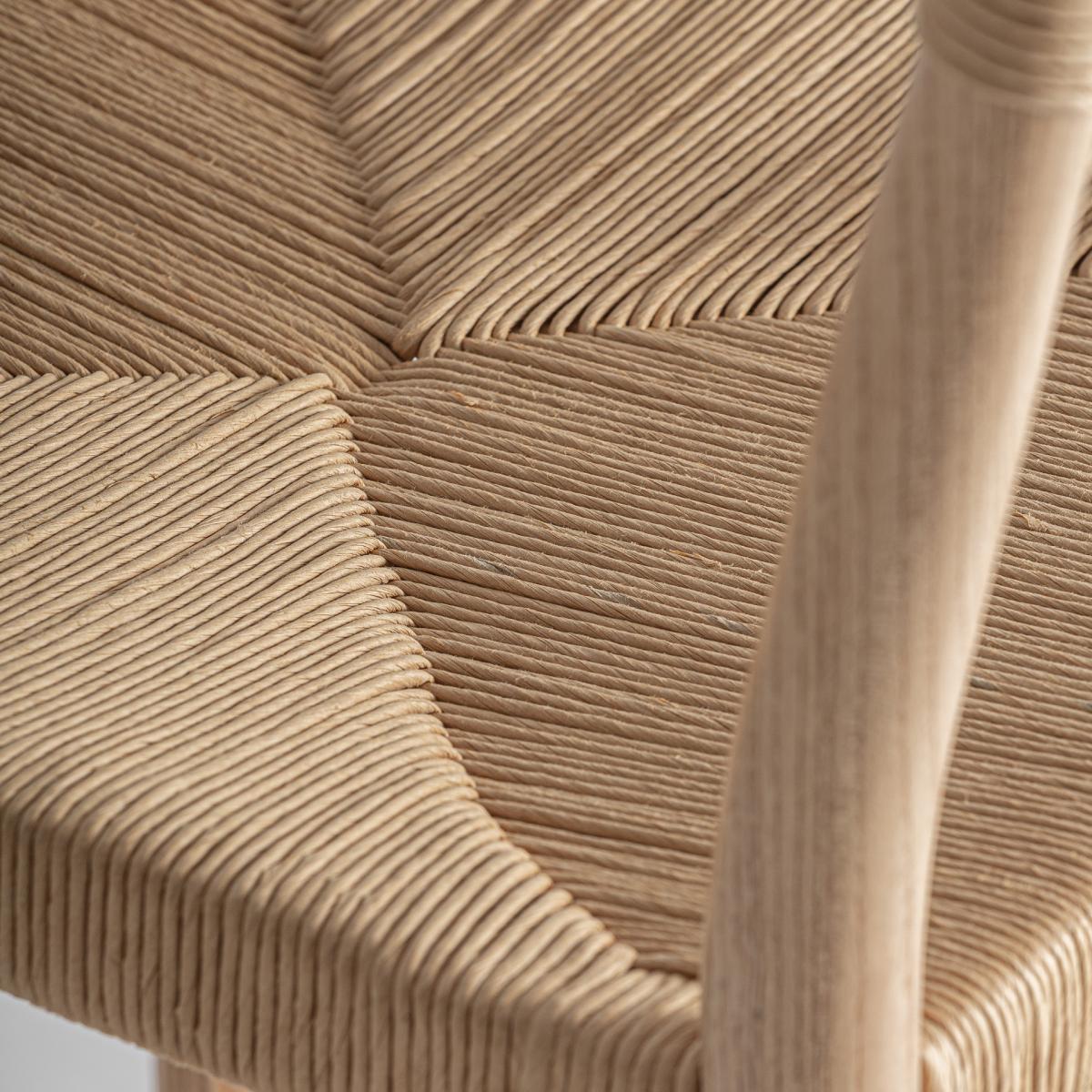 Silla Jaleha de estilo boho fabricado en madera de olmo en color marrón claro combinado con fibra natural.