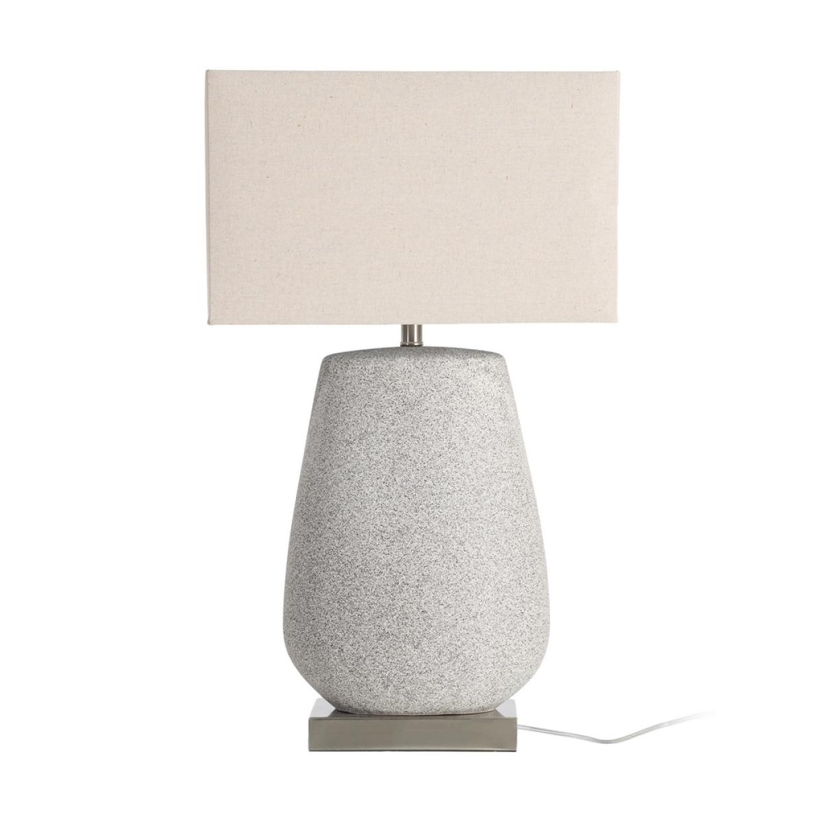 LÁMPARA MESA CERÁMICA ILUMINACIÓN 46 X 24 X 75,50 CM Base de cerámica y metal, medidas 30,5x21x57cm. Pantalla de tejido (lino), medidas 46x24x28cm. Voltios: 220-240V. Casquillo: E27. Bombilla: 1*60W máx (no incluida). Longitud cable: 150cm.