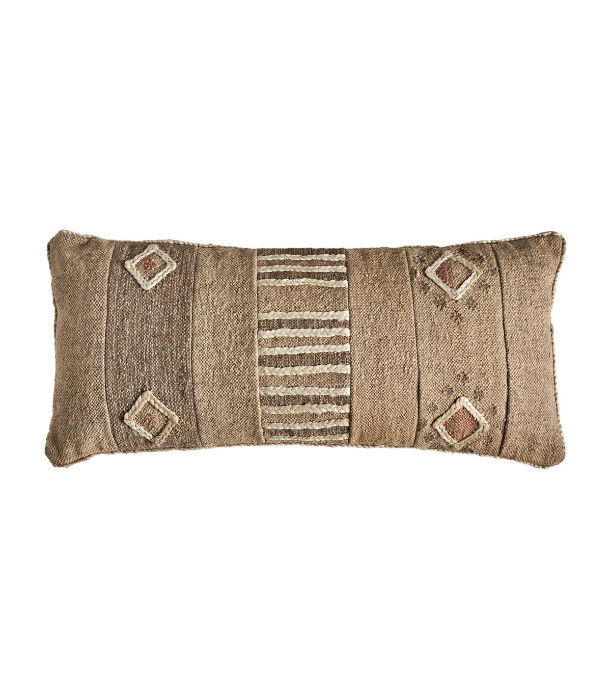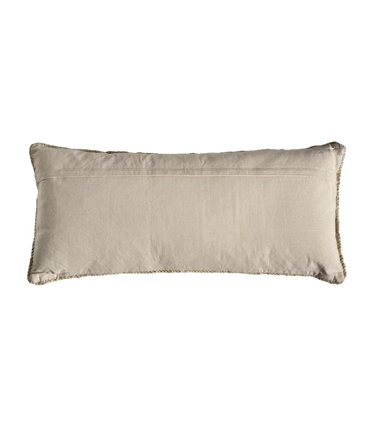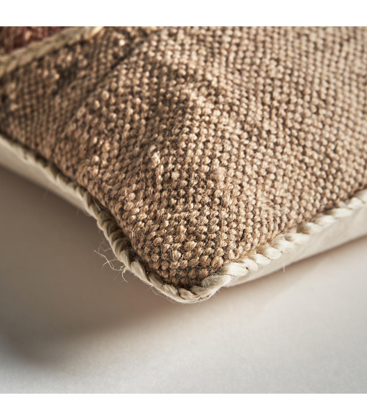 Cojín rectangular elgin de estilo vintage fabricado en yute en color marrón con acabado killim. Producto desenfundable.
