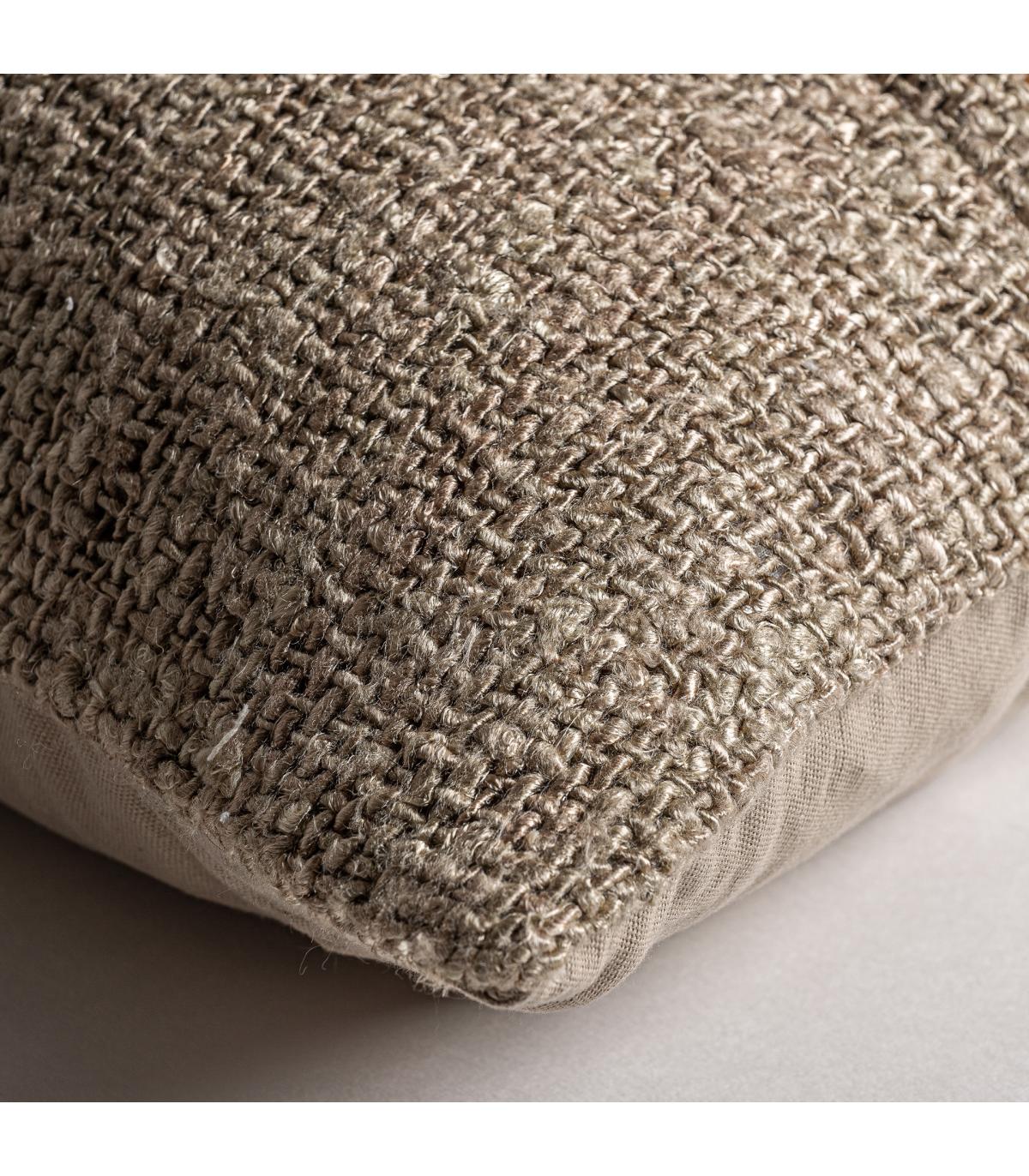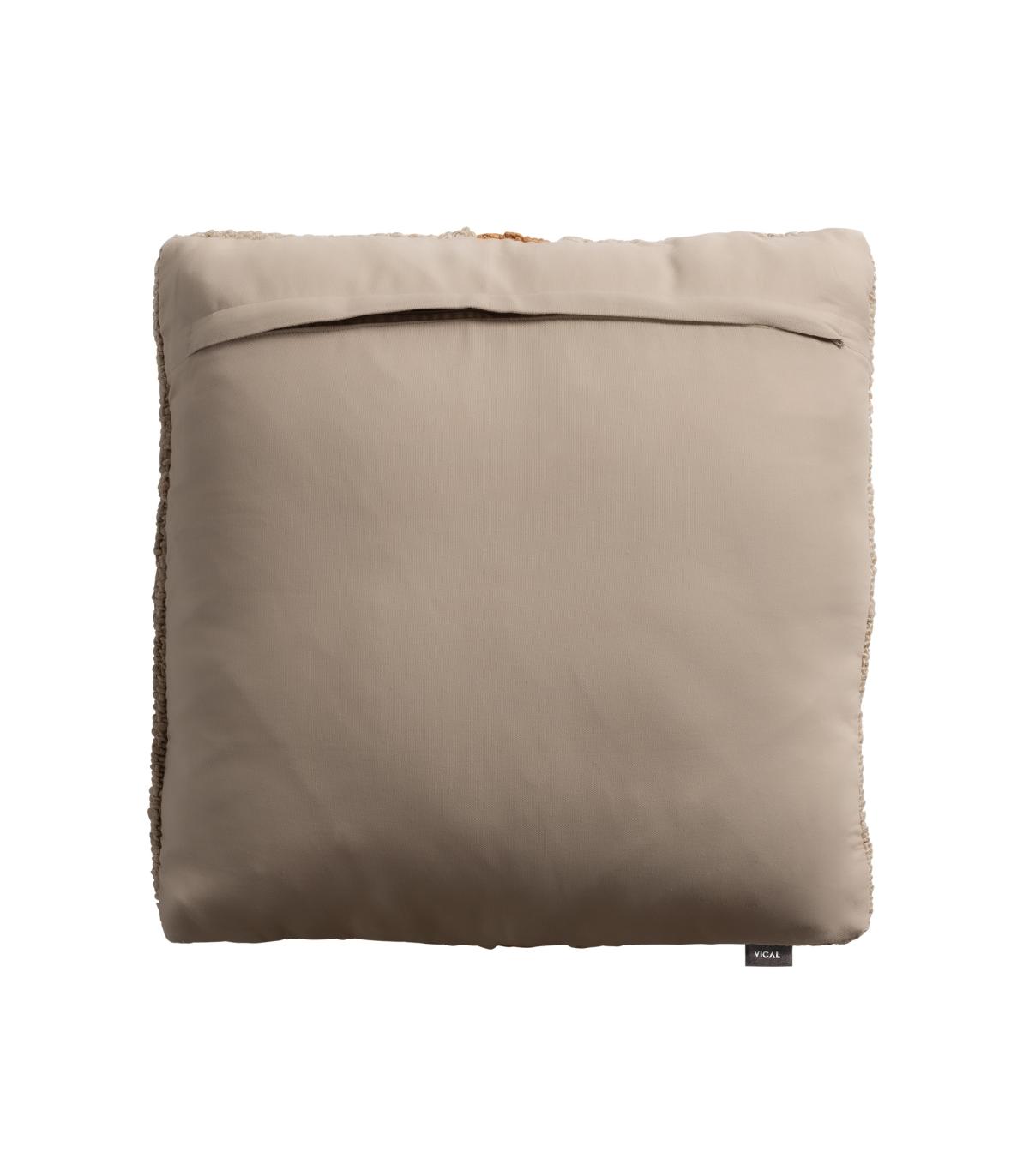Cojín edris de estilo clásico fabricado en algodón en color tonos en marrón combinado con terciopelo en color beige con acabado liso y guata sintética. Producto desenfundable.