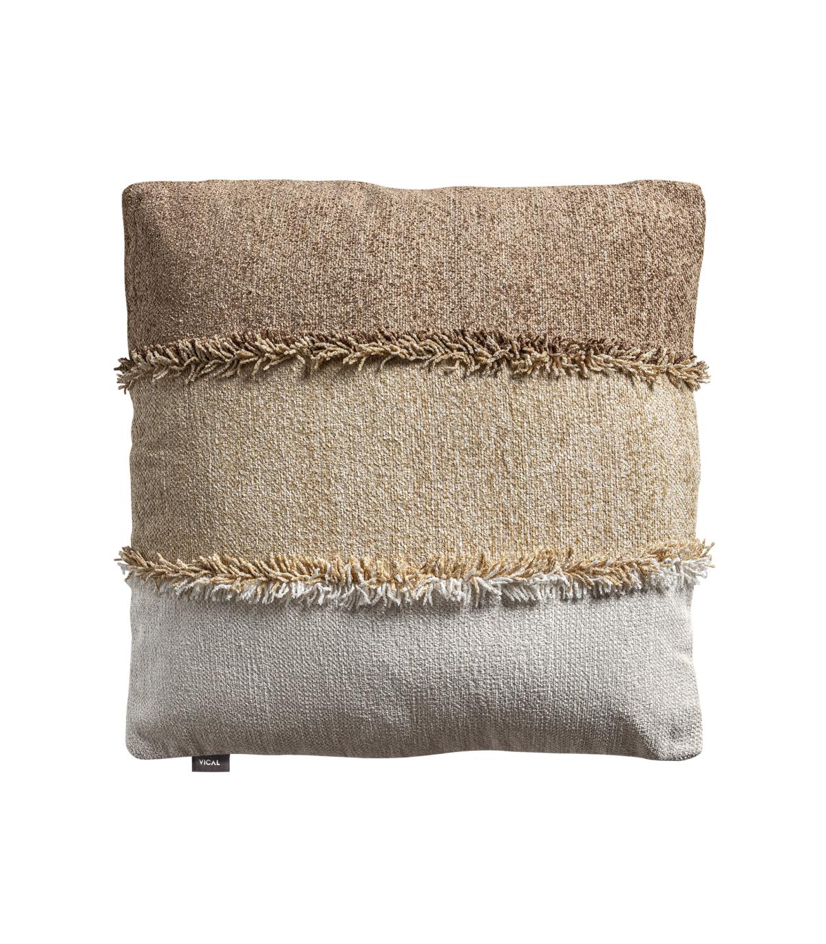 Cojín euken de estilo clásico fabricado en algodón en color tonos en marrón combinado con terciopelo en color blanco con acabado liso y guata sintética. Producto desenfundable.