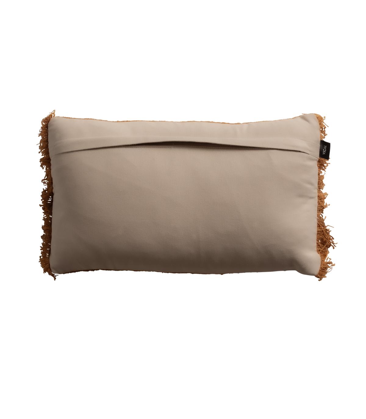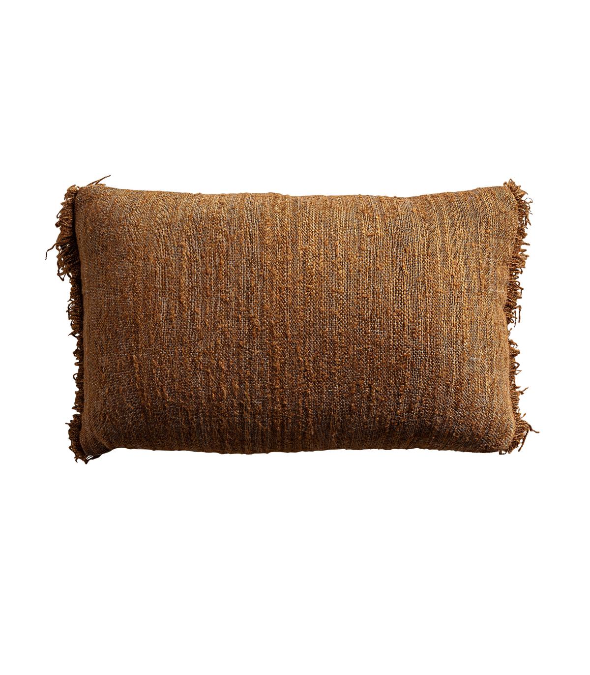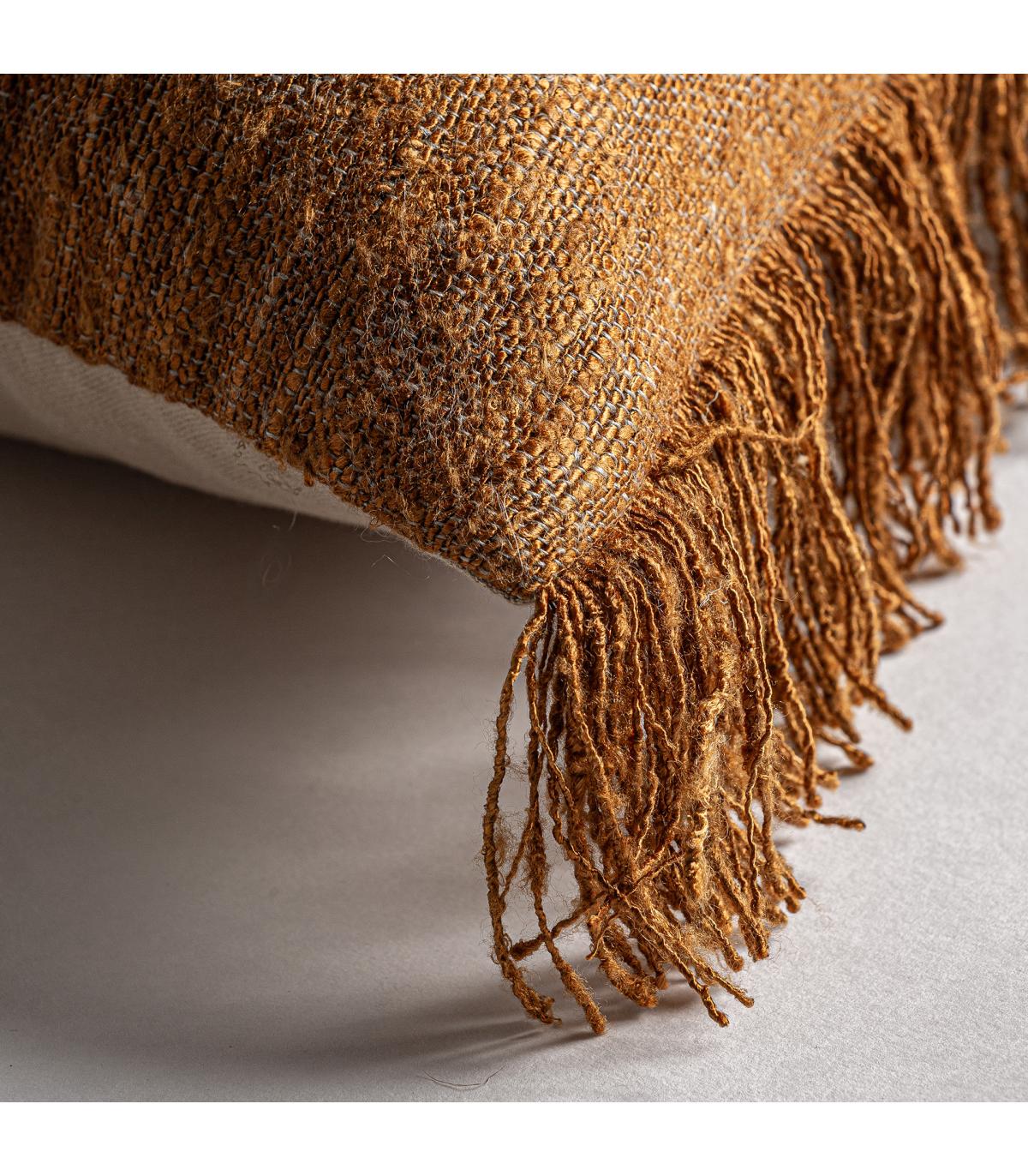 Cojín gorane de estilo clásico fabricado en algodón en color beige combinado con lino en color marrón y guata sintética.
