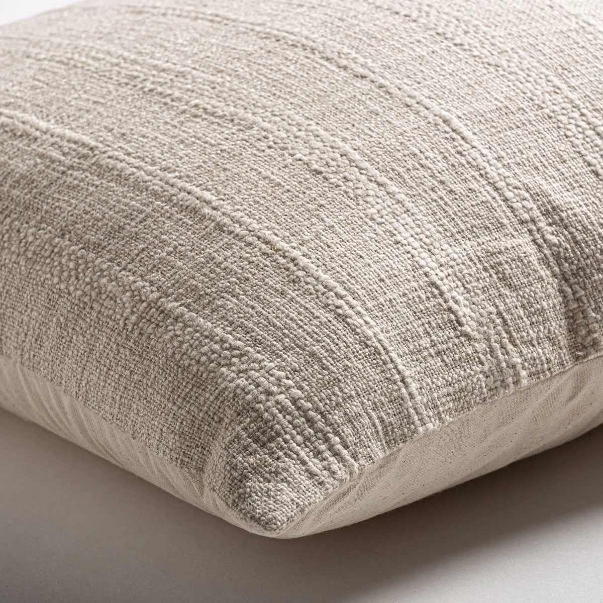 Cojín angeus de estilo provenzal fabricado en lino en color blanco roto combinado con poliéster. Producto desenfundable.