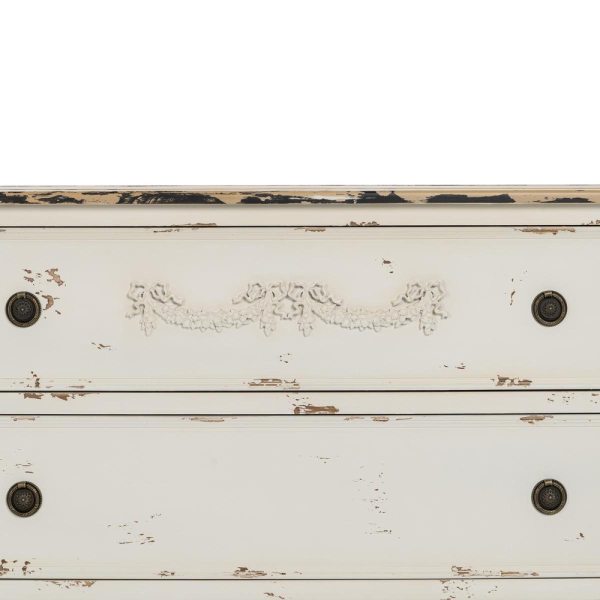 CÓMODA BLANCO ROZADO MADERA 105 X 50 X 87,50 CM Material: madera de abeto - Dm. Altura patas: 9cm. Medida cajones: 98x21.5cm.