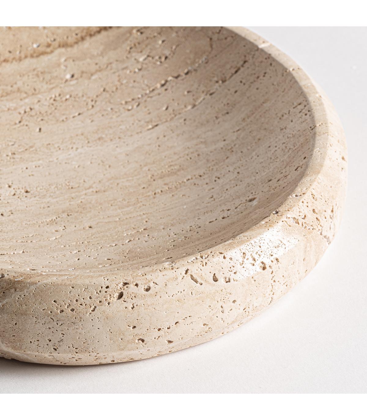 Vacia bolsillos jasha en color crema de estilo contemporáneo. Fabricado en travertino.