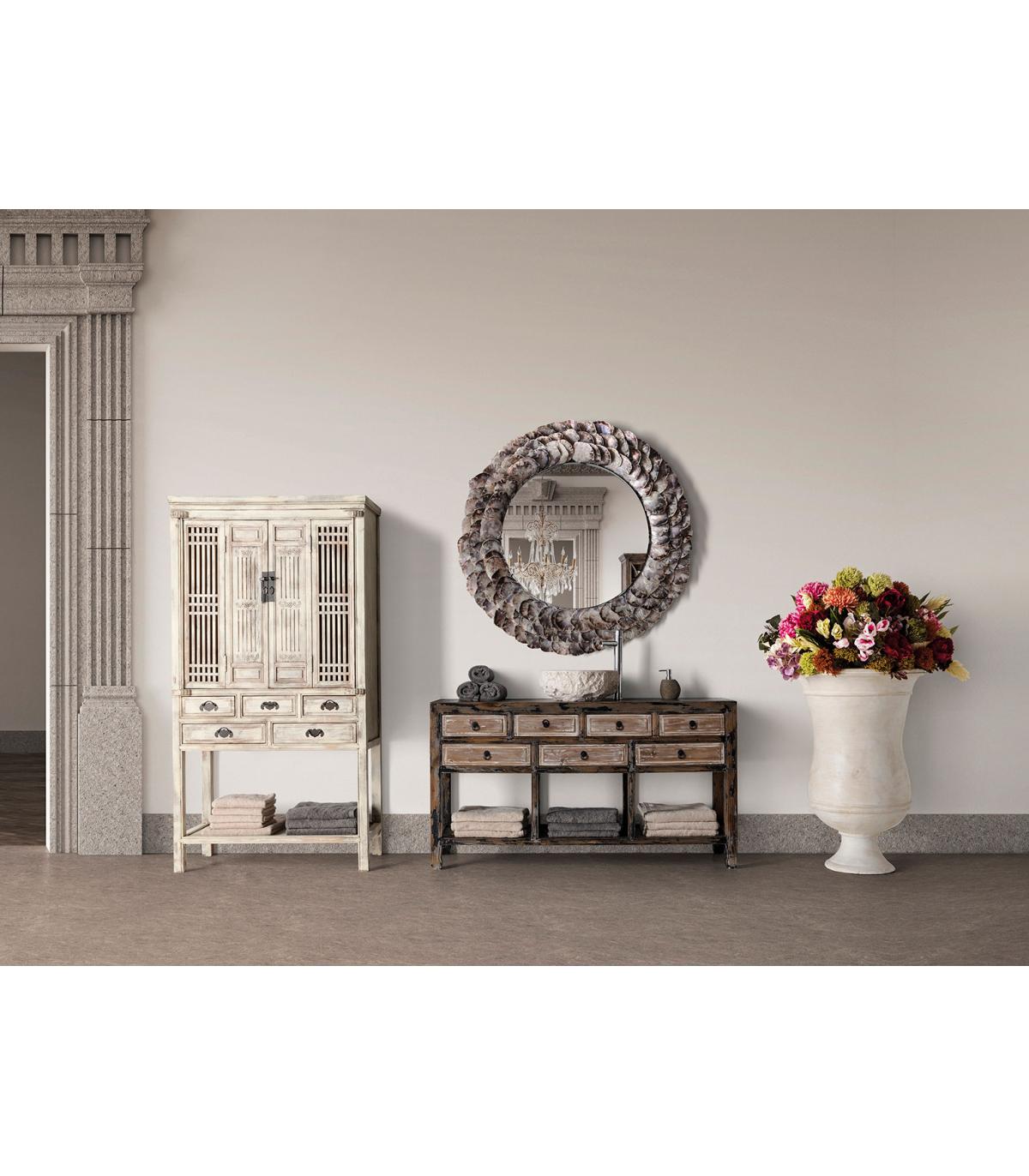 Lavabo Jova de estilo colonial fabricado en mármol en color gris.