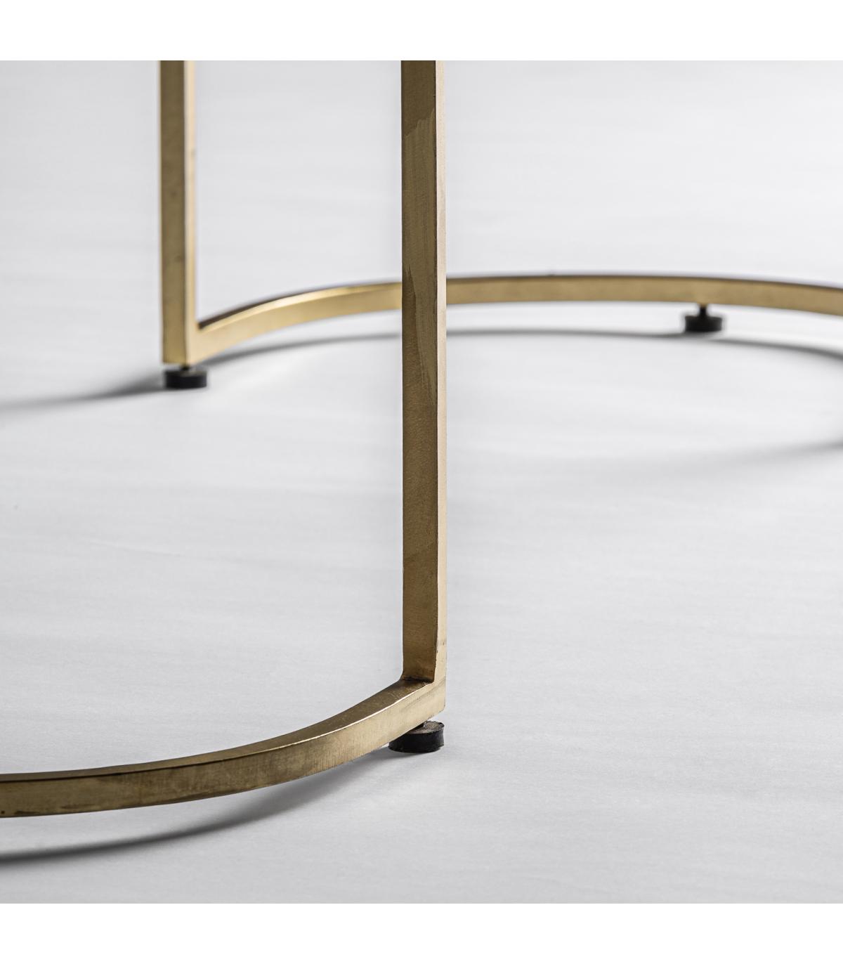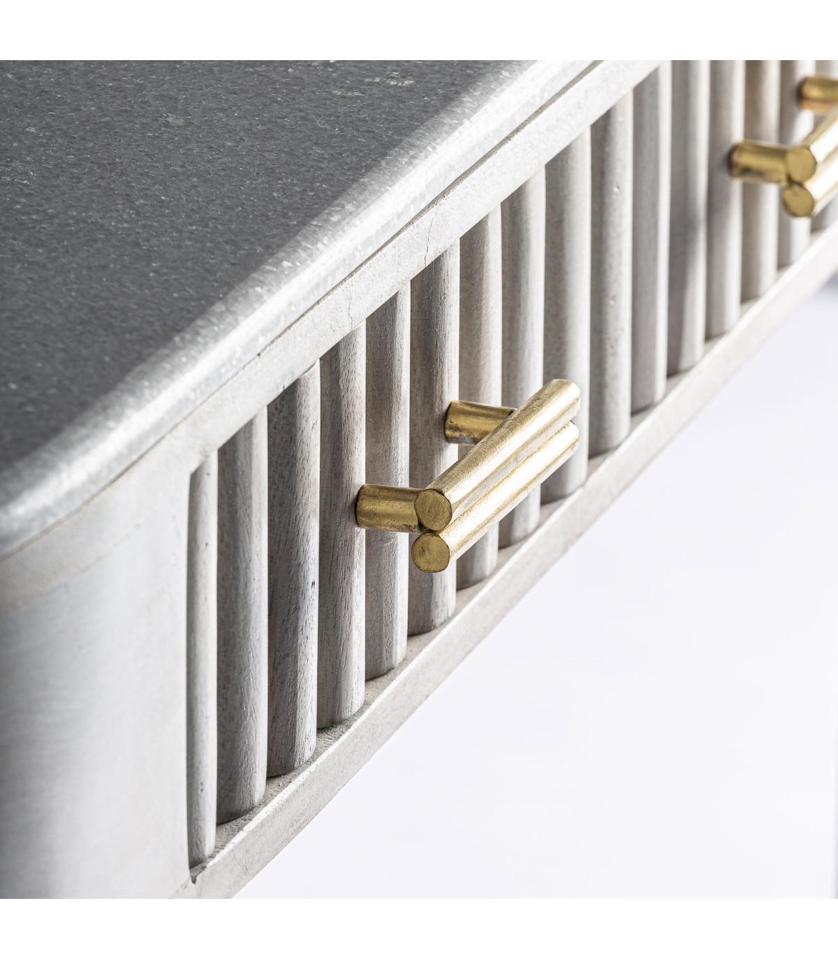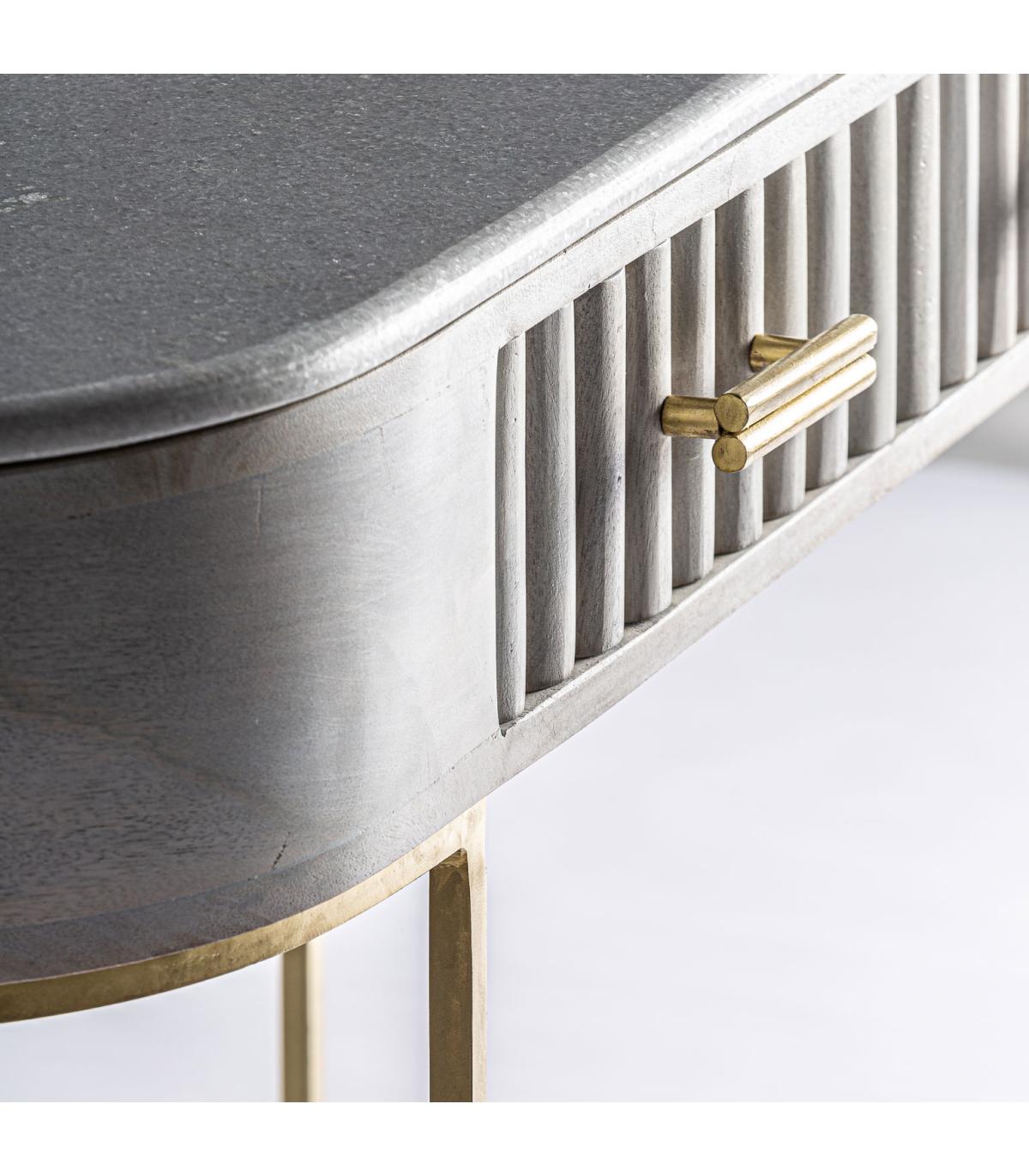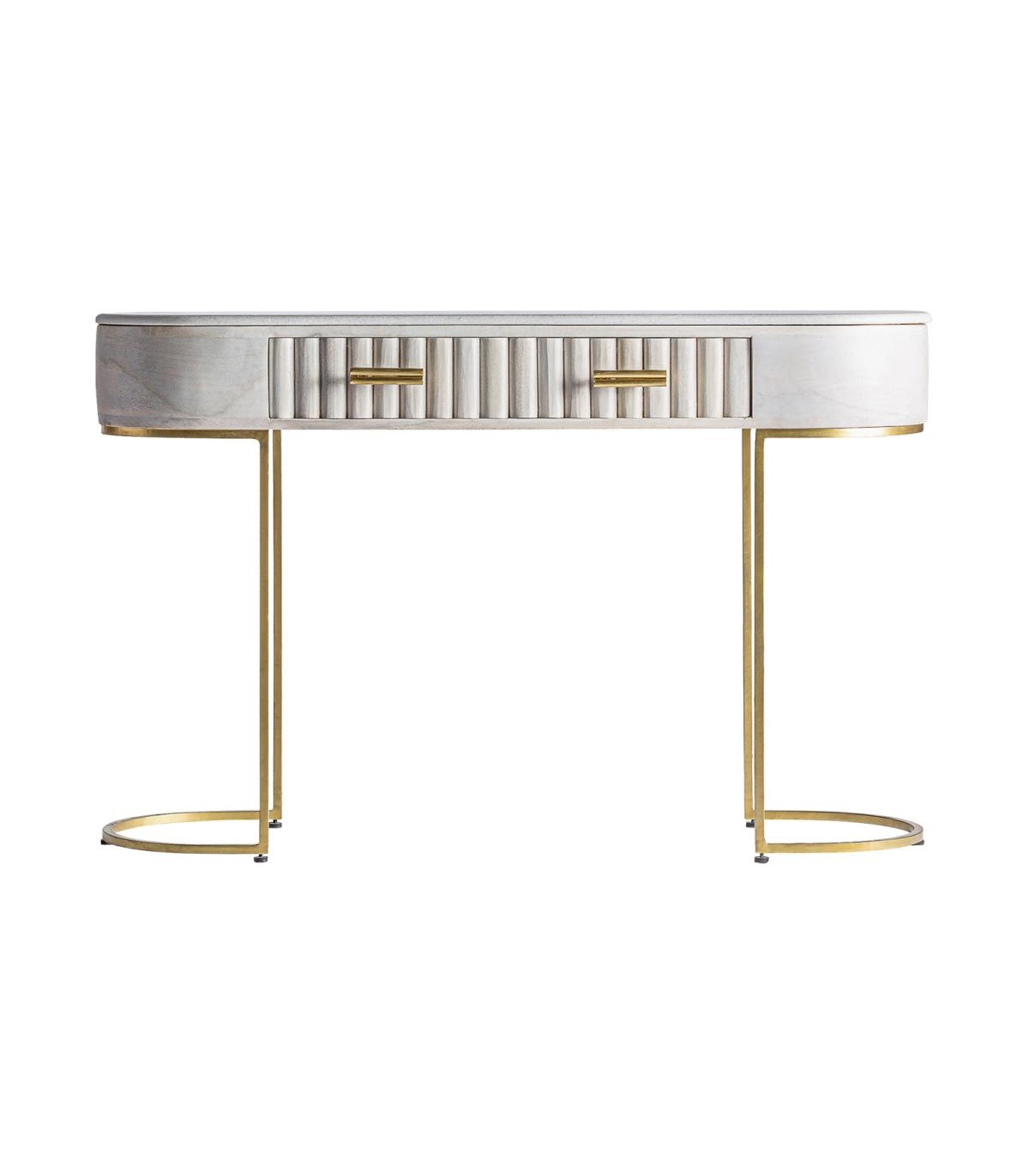 Consola glees de estilo art deco fabricado en madera de mango en color crema combinado con hierro en color oro y latón. Producto desmontable.