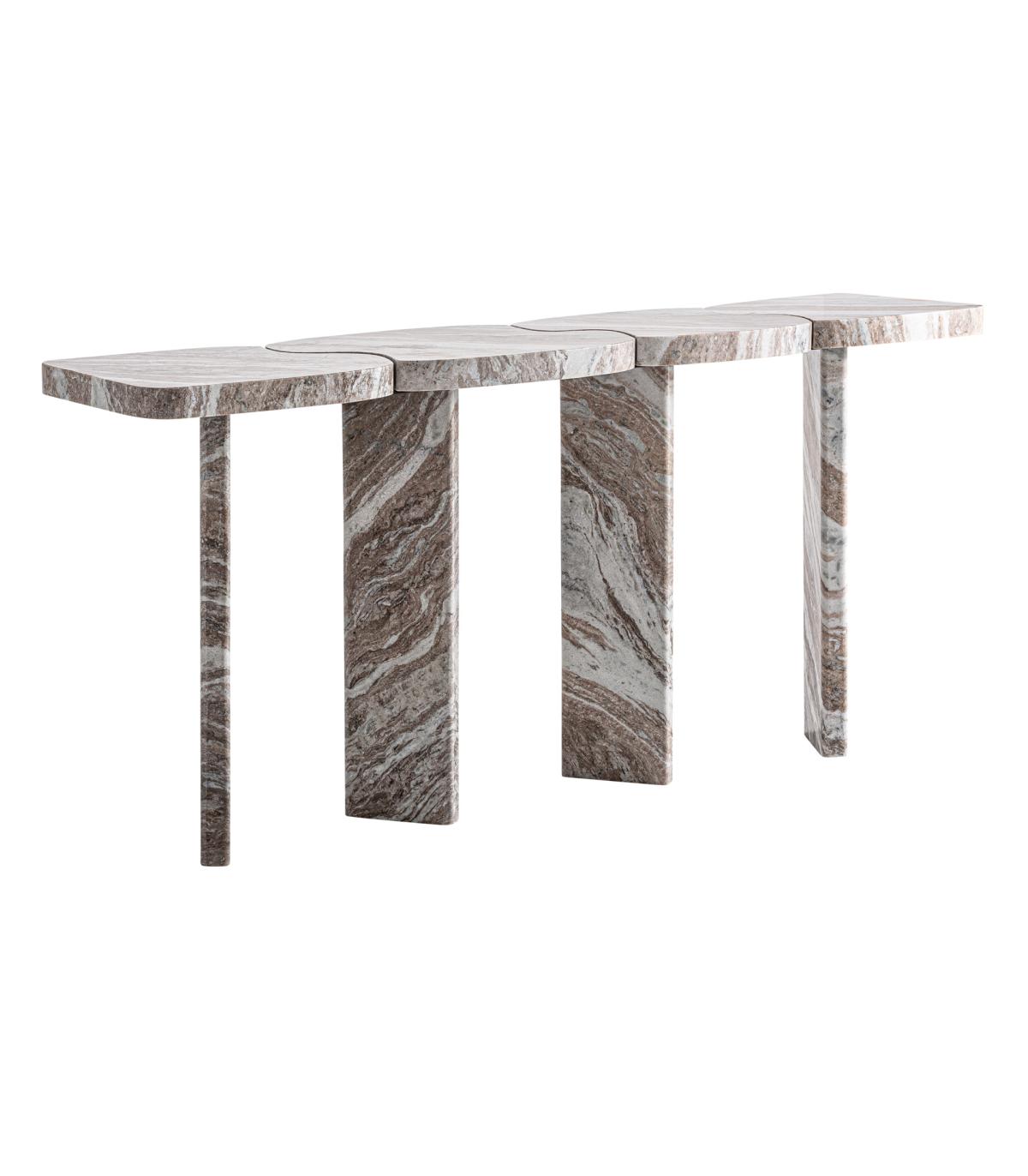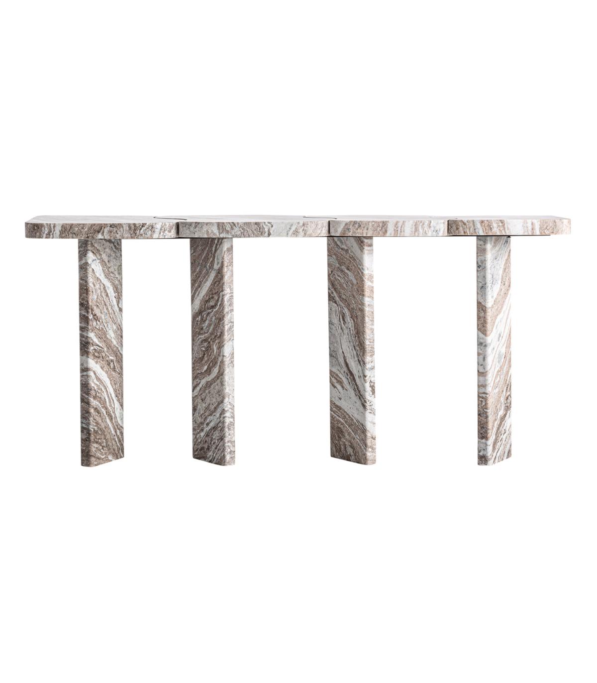 Consola Legsby de estilo contemporáneo fabricado en mármol en color tonos neutros.
