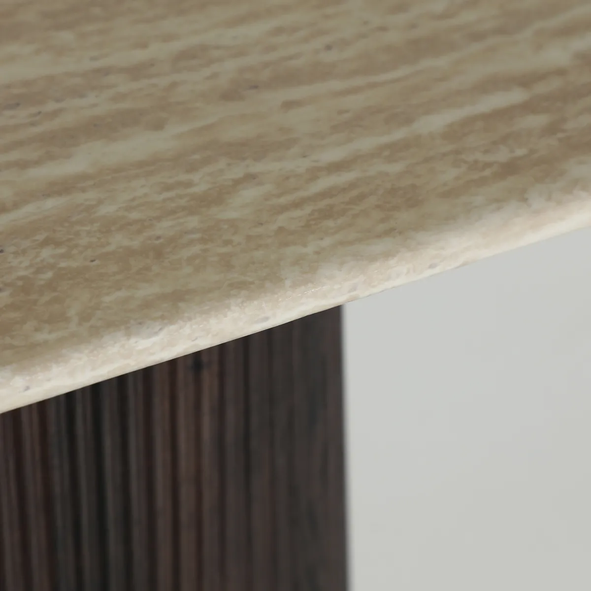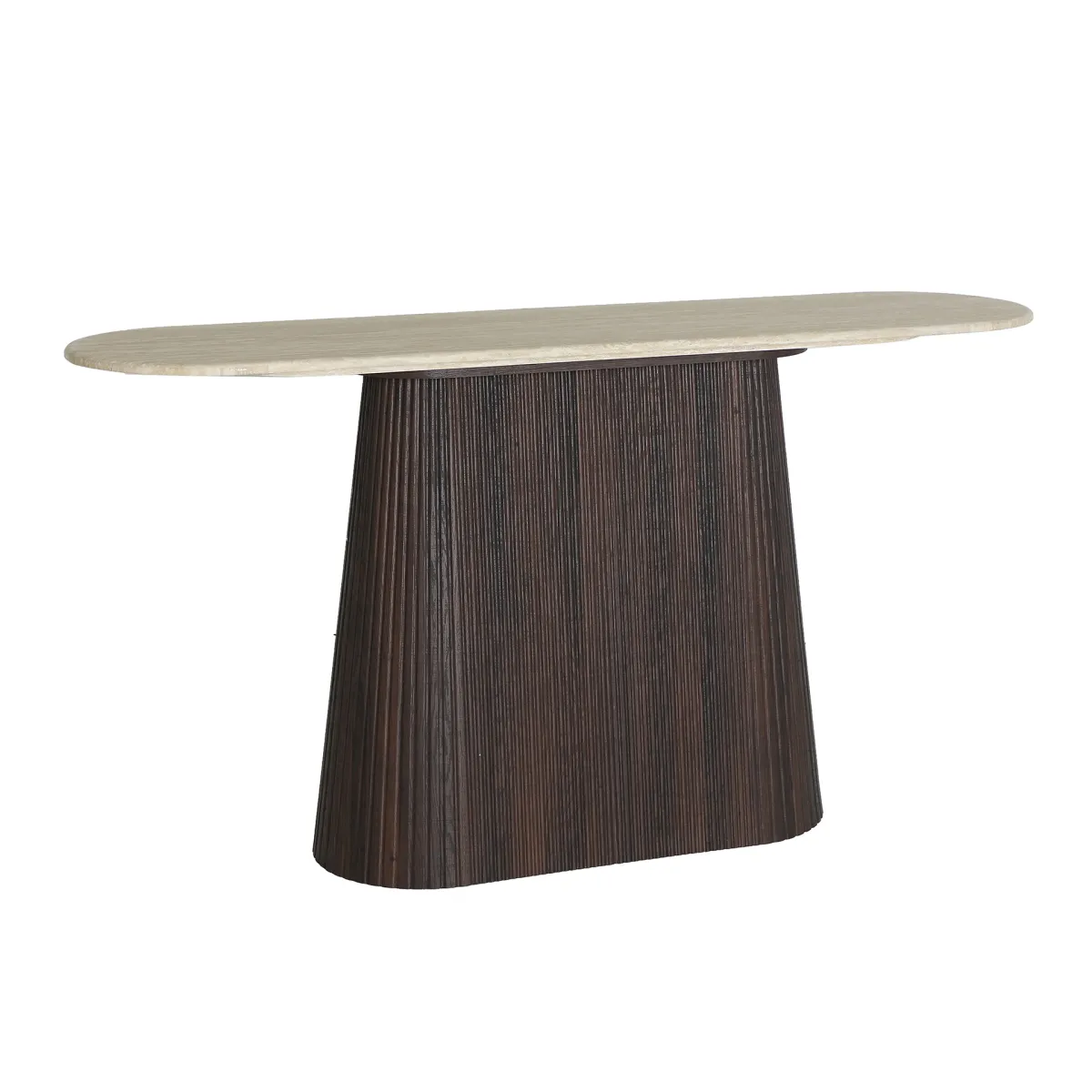 Consola Verona de estilo contemporáneo, fabricado en madera dm en color marrón, combinado con mármol sintético en color beige.