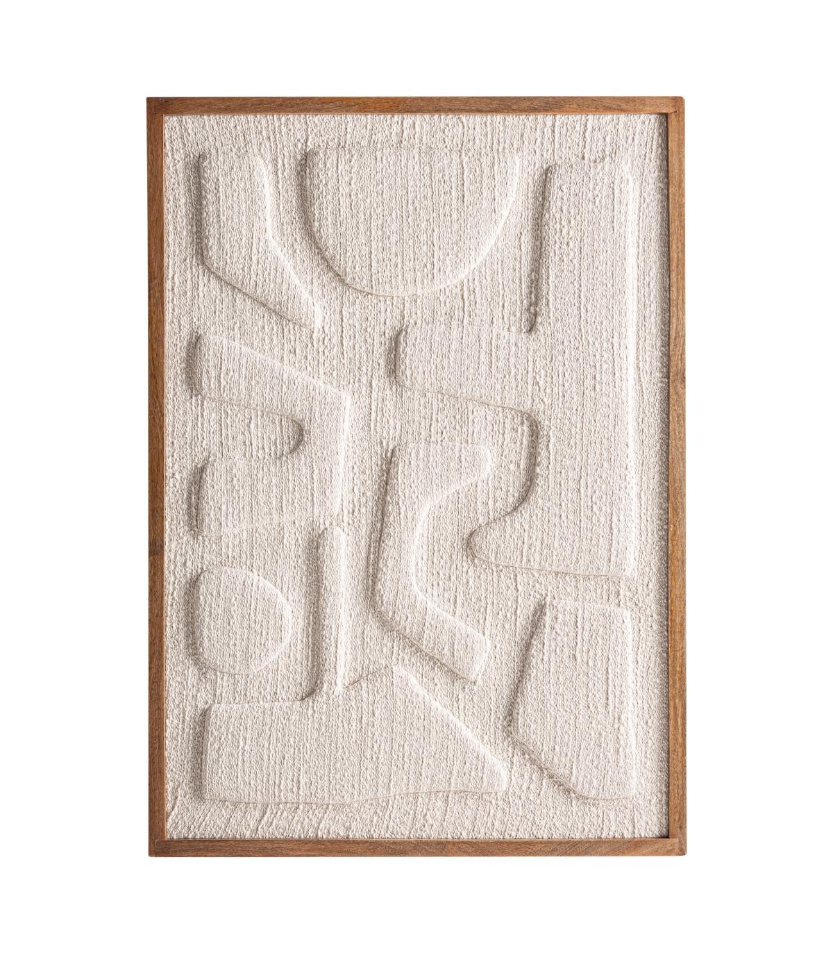 Cuadro Sobek de estilo contemporáneo fabricado en algodón en color blanco roto combinado con madera de mango en color marrón.