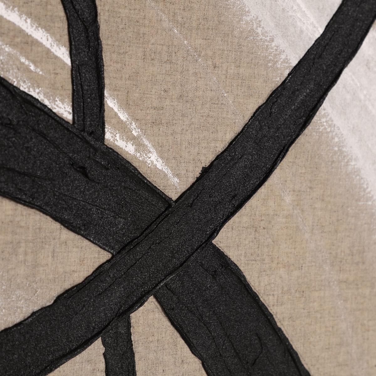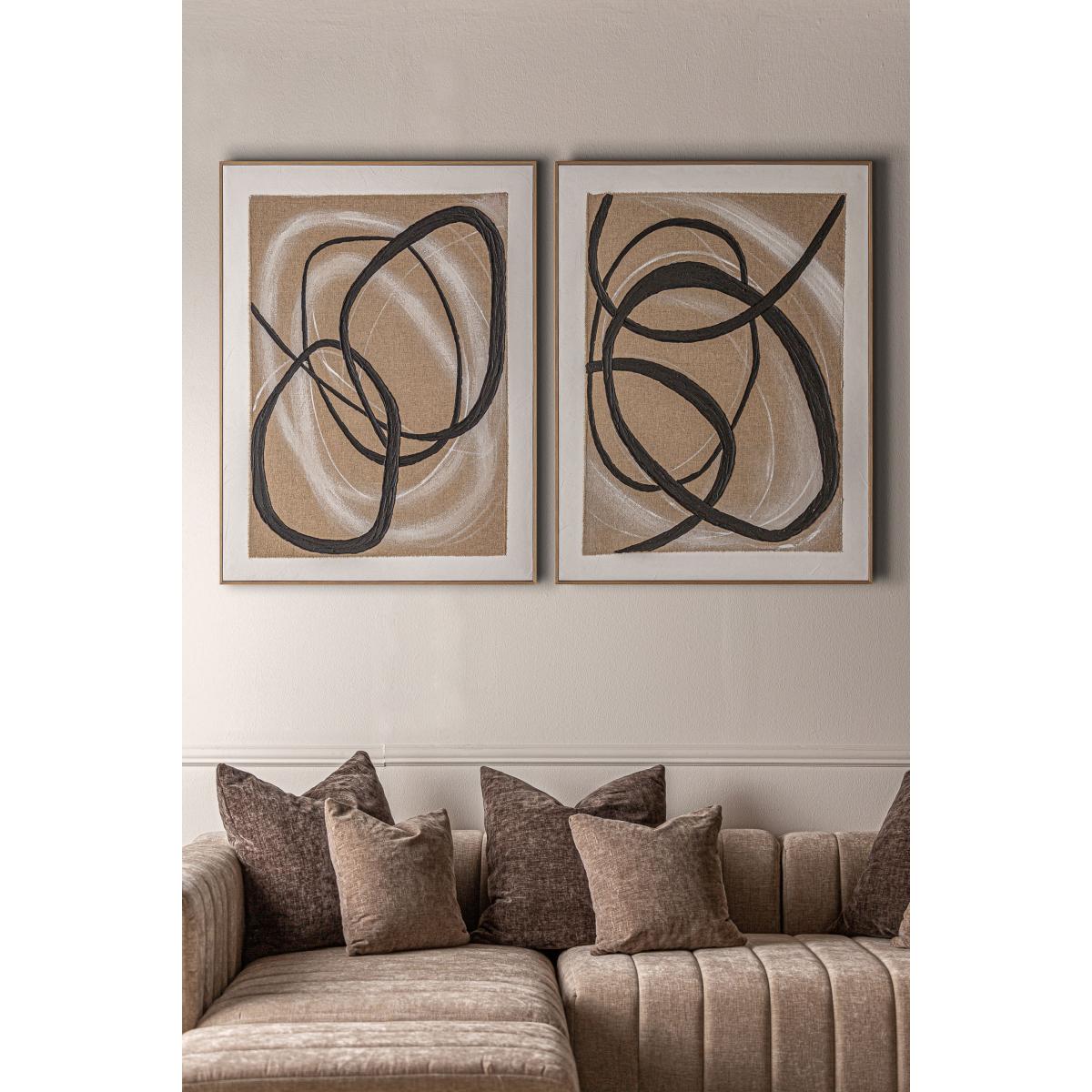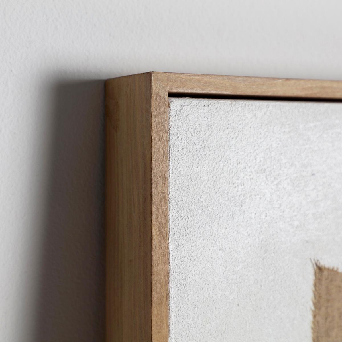 Cuadro rectangular elysee de estilo contemporáneo, fabricado en lienzo en color beige con acabado artesanal, combinado con madera de pino en color marrón claro.
