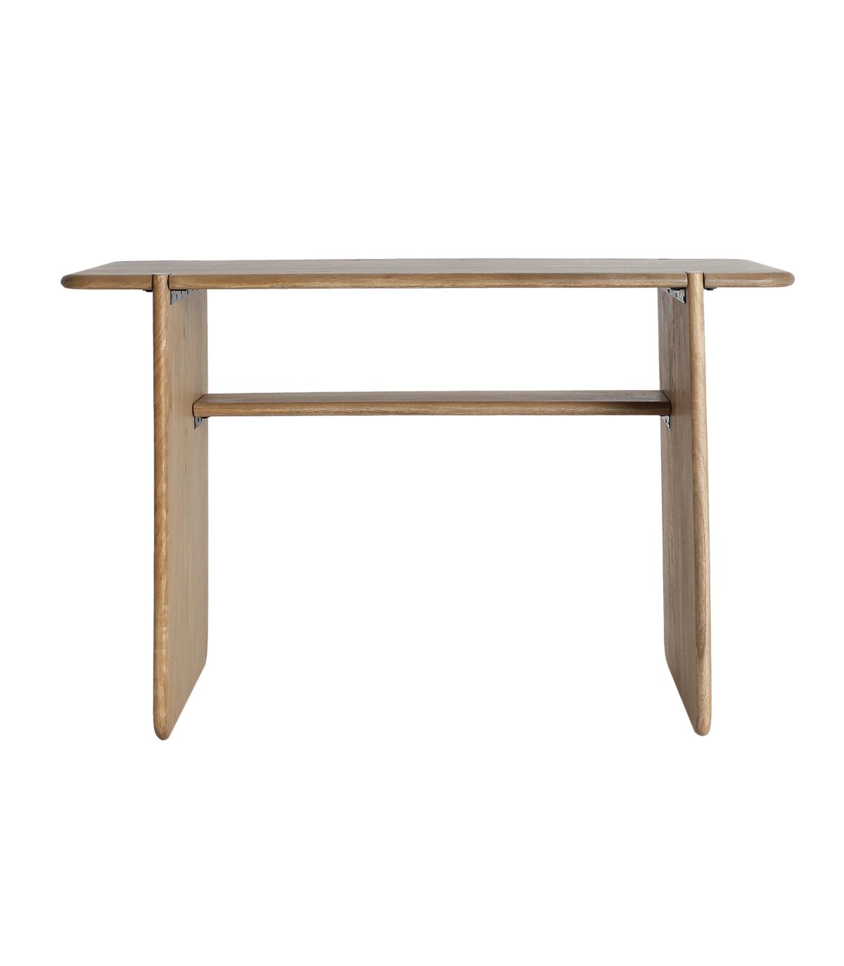 Escritorio Gaillac de estilo nórdico, fabricado en madera de mango en color marrón claro. Producto desmontable.