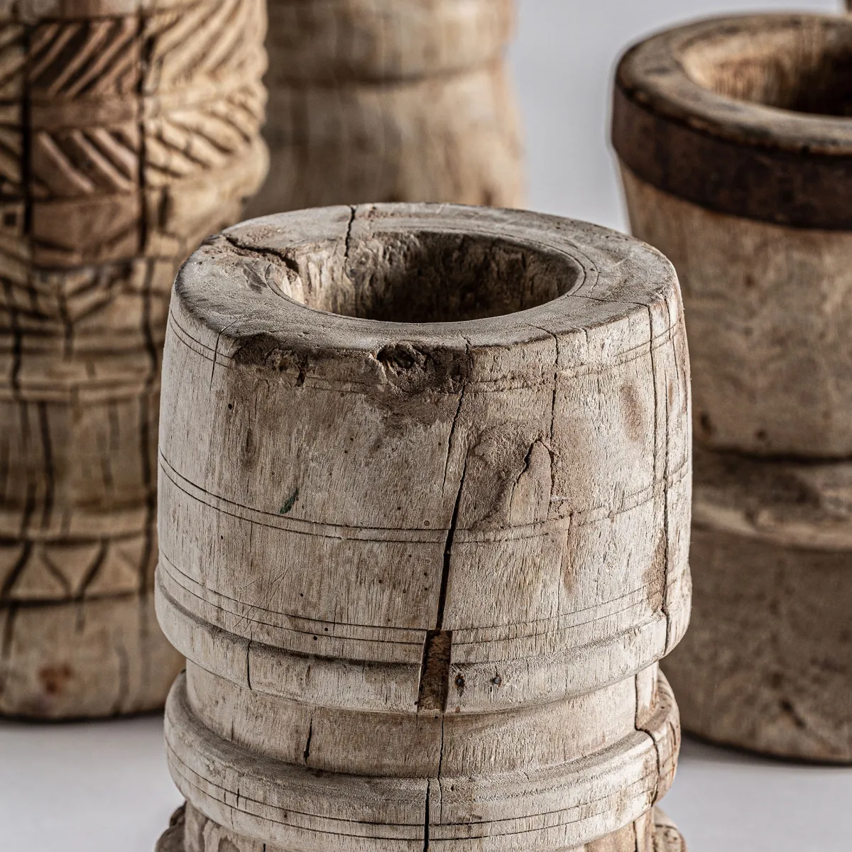 Figura decorativa de estilo étnico fabricado en madera de okhali en color marrón con acabado envejecido.