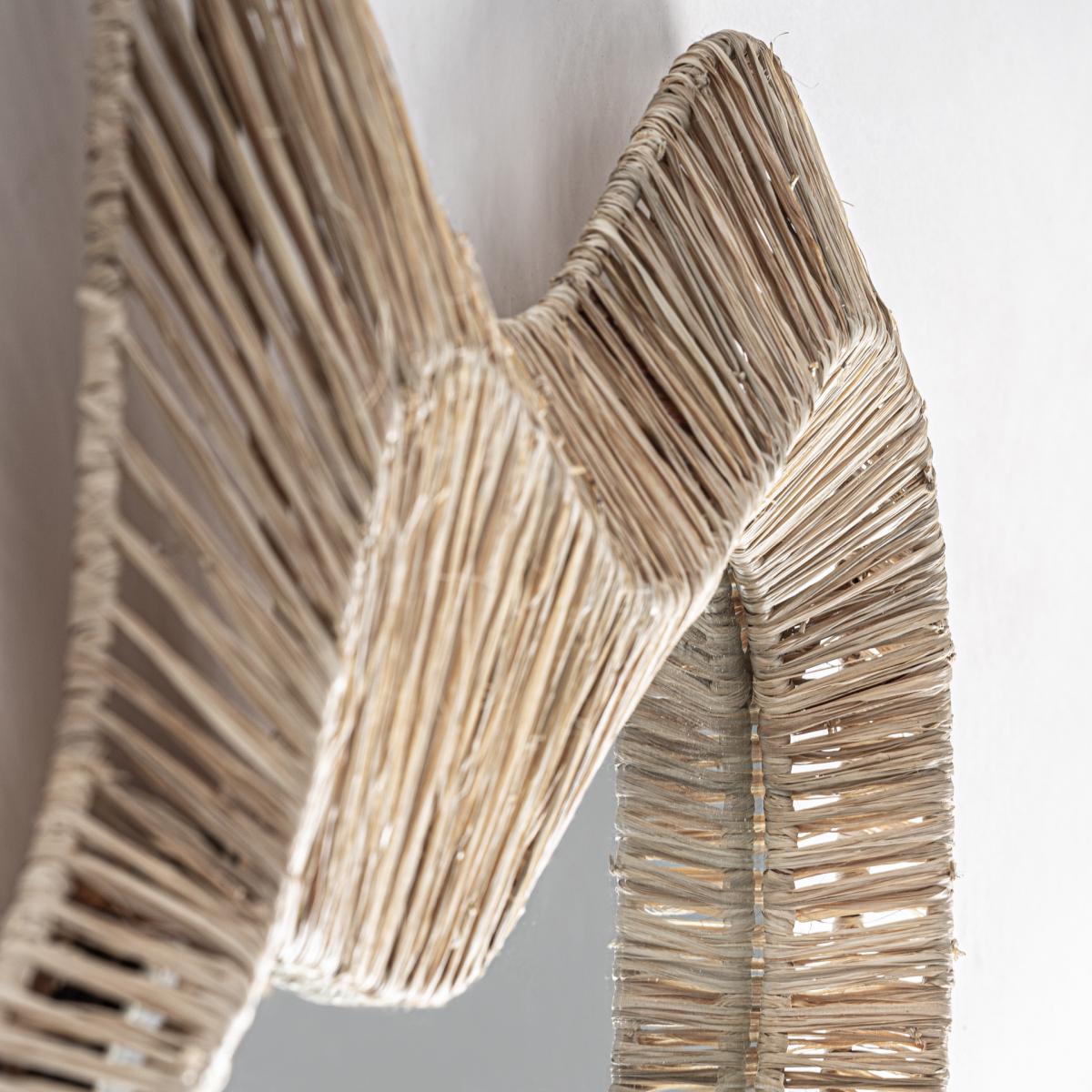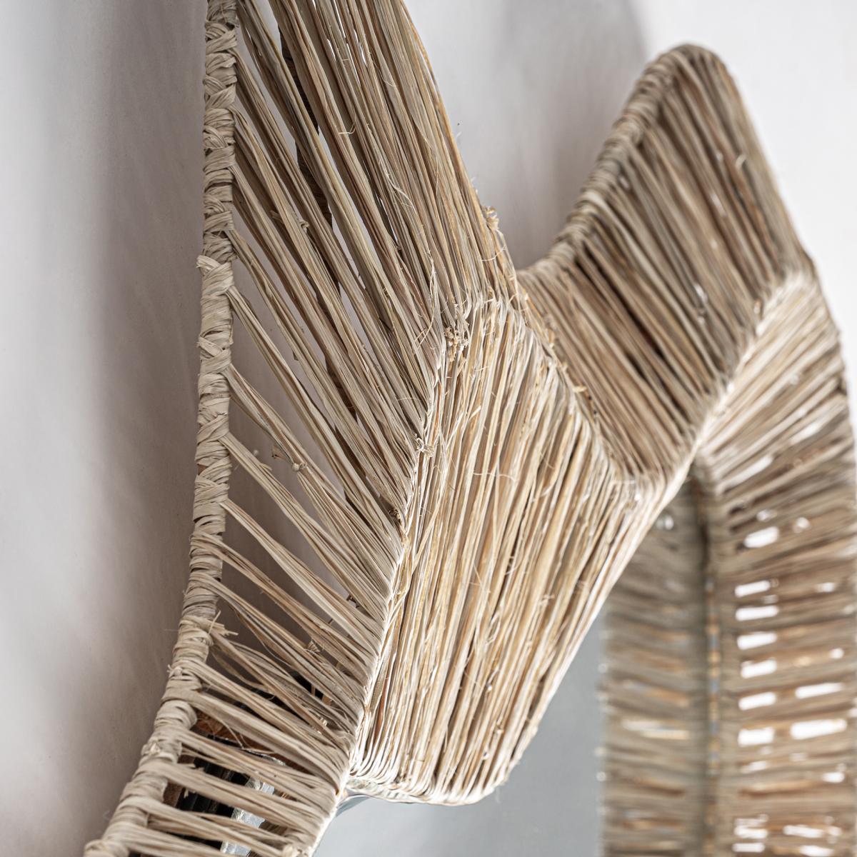 Espejo fabricado en rafia en color marrón combinado con espejo y madera dm.