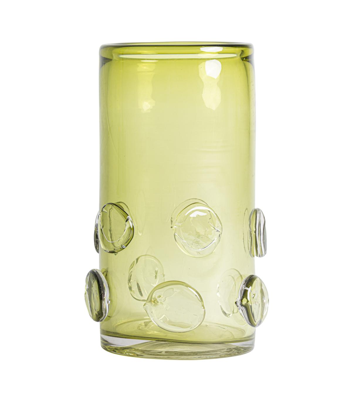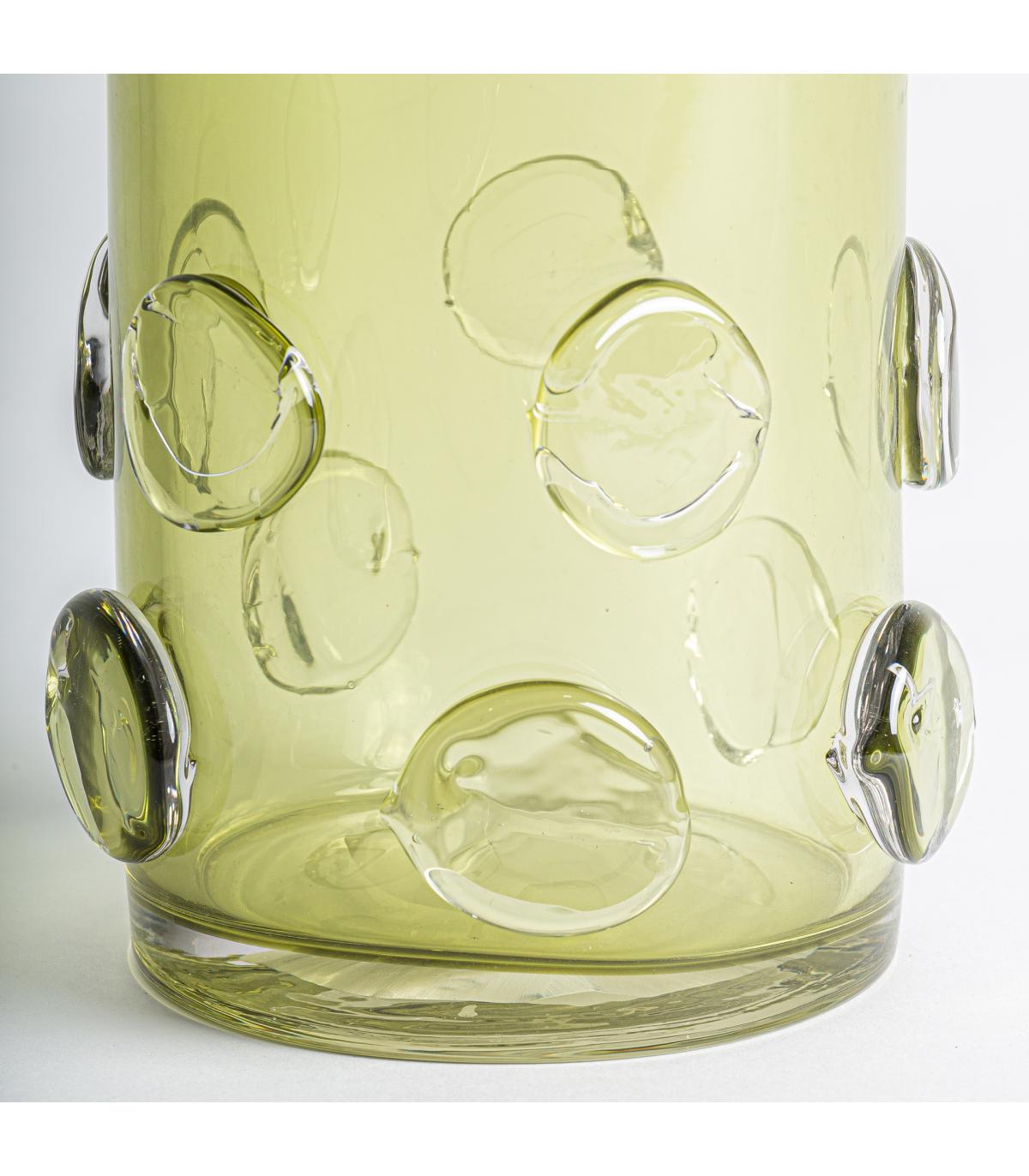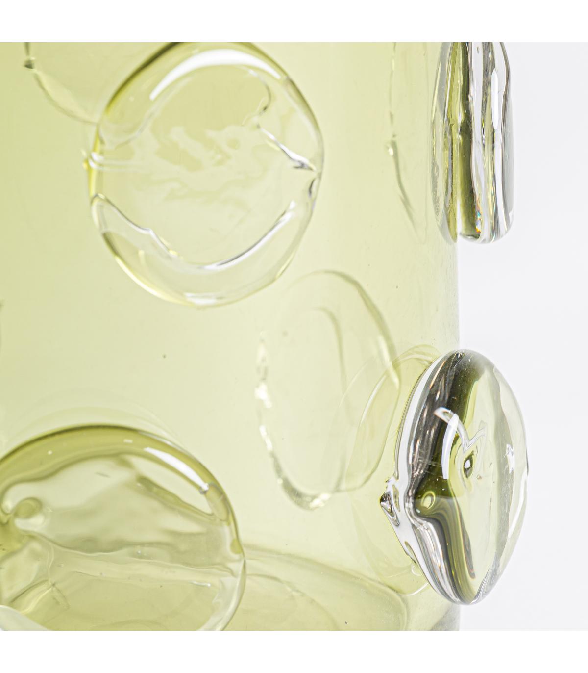 Jarrón Kio de estilo contemporáneo fabricado en vidrio en color verde con acabado traslúcido.