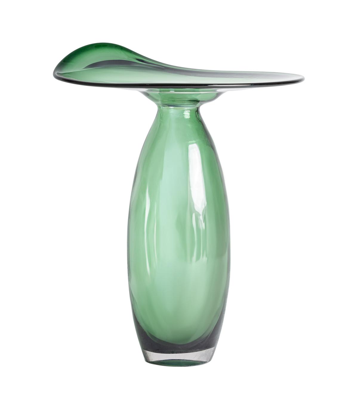 Jarrón Akari de estilo contemporáneo fabricado en vidrio en color verde con acabado traslúcido.