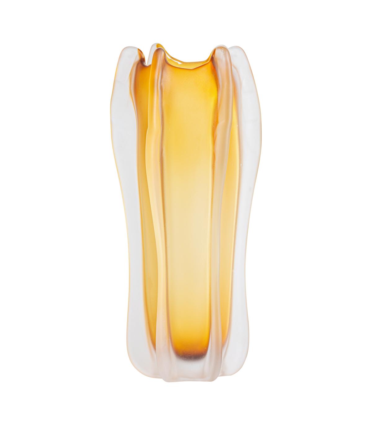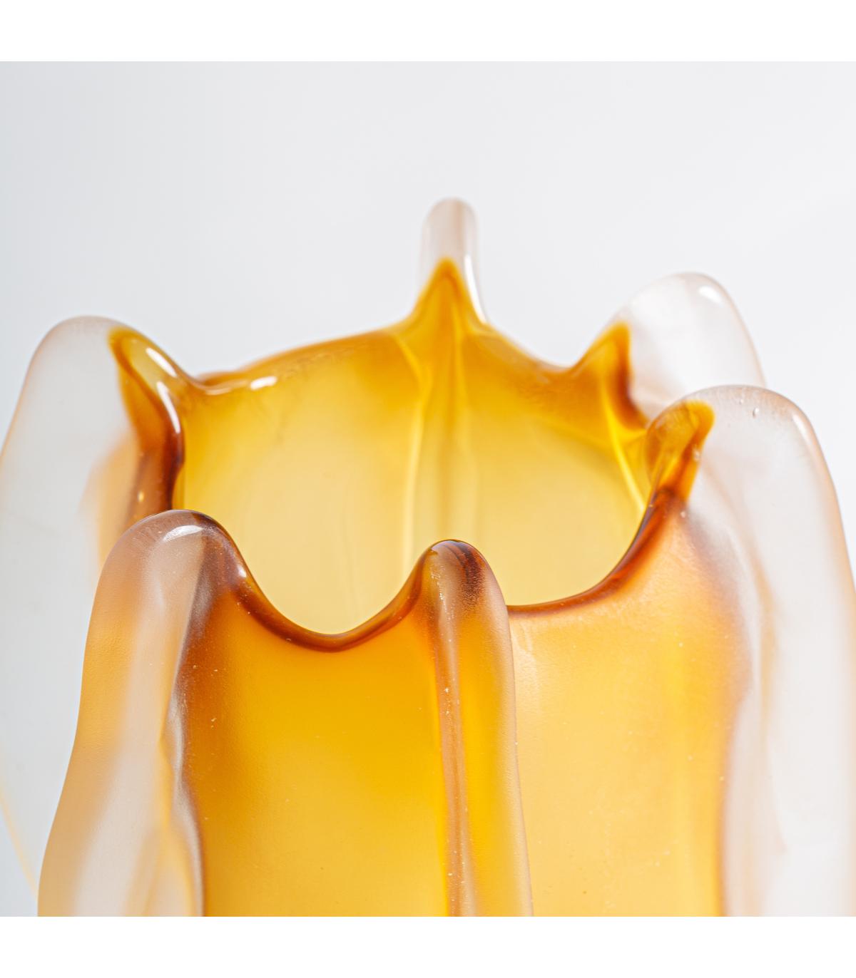 Jarrón Mizuki de estilo contemporáneo fabricado en vidrio en color ambar.
