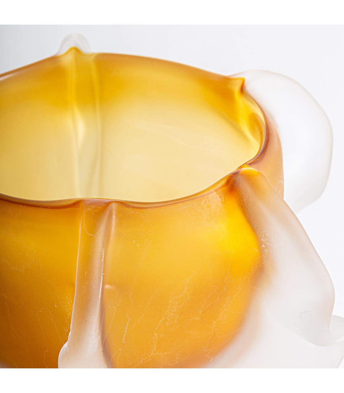 Jarrón Mizuki de estilo contemporáneo fabricado en vidrio en color ambar.