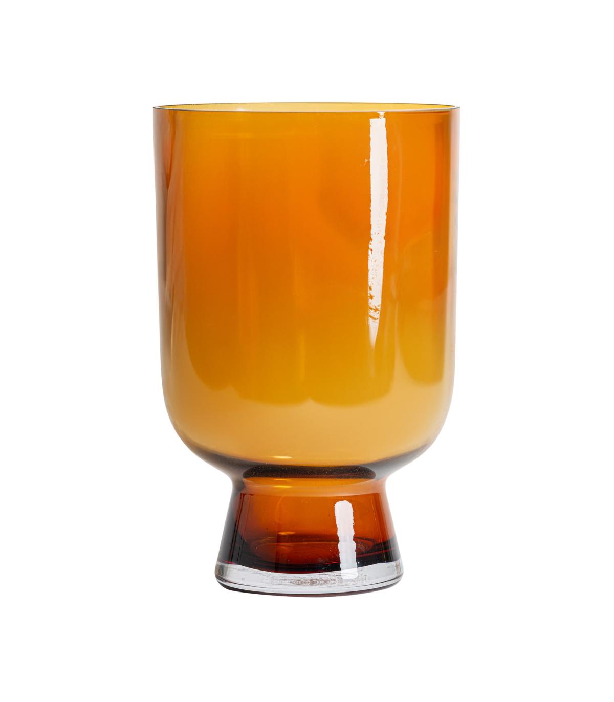 Jarrón Yuka de estilo contemporáneo fabricado en vidrio en color ambar.