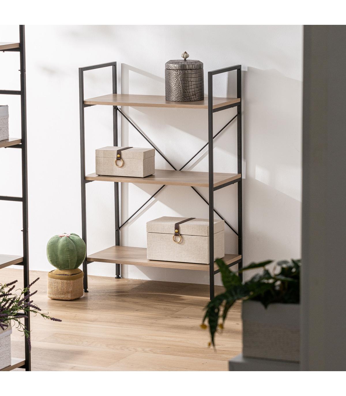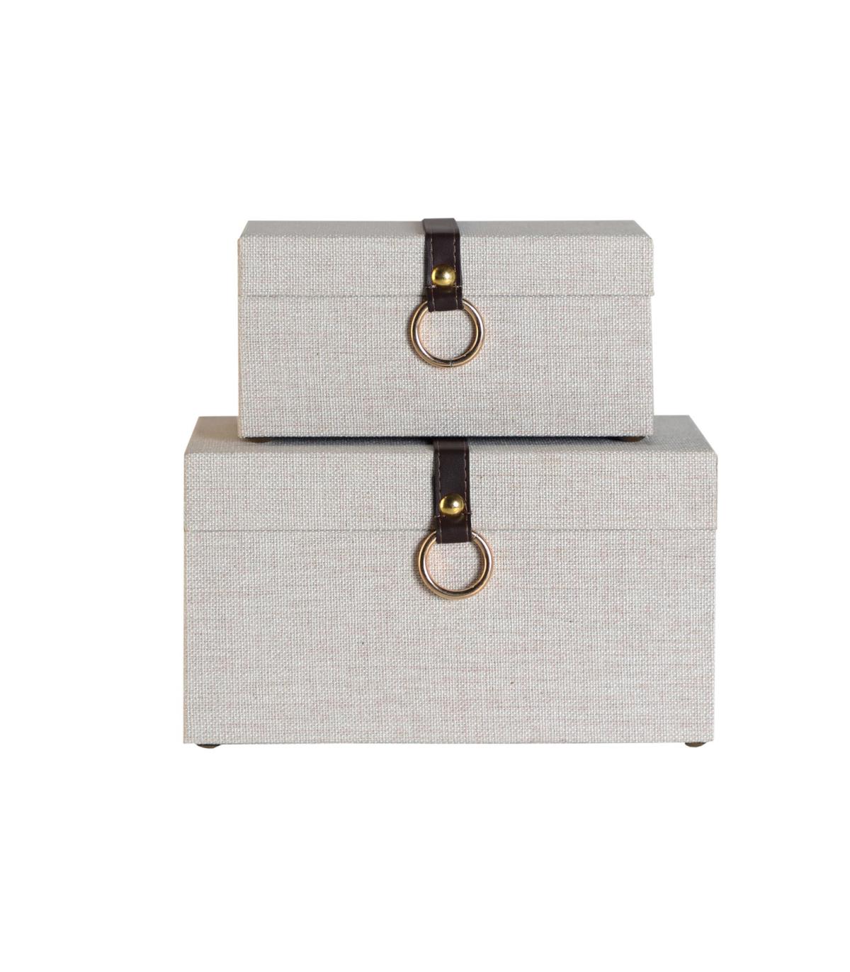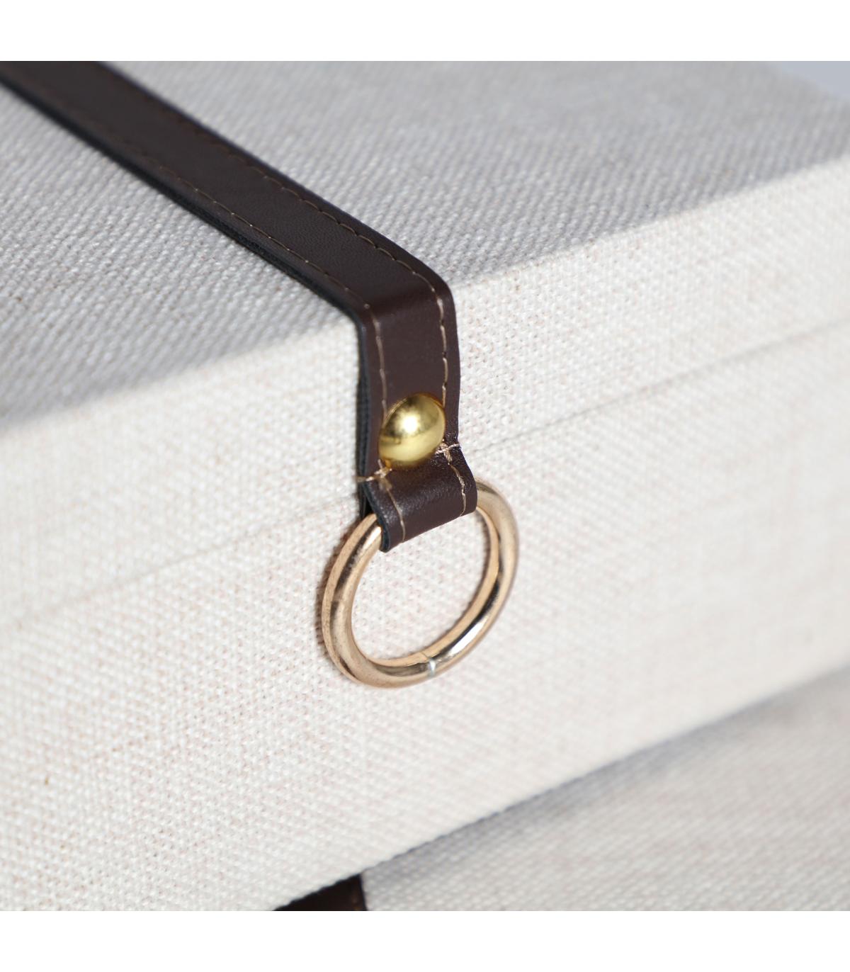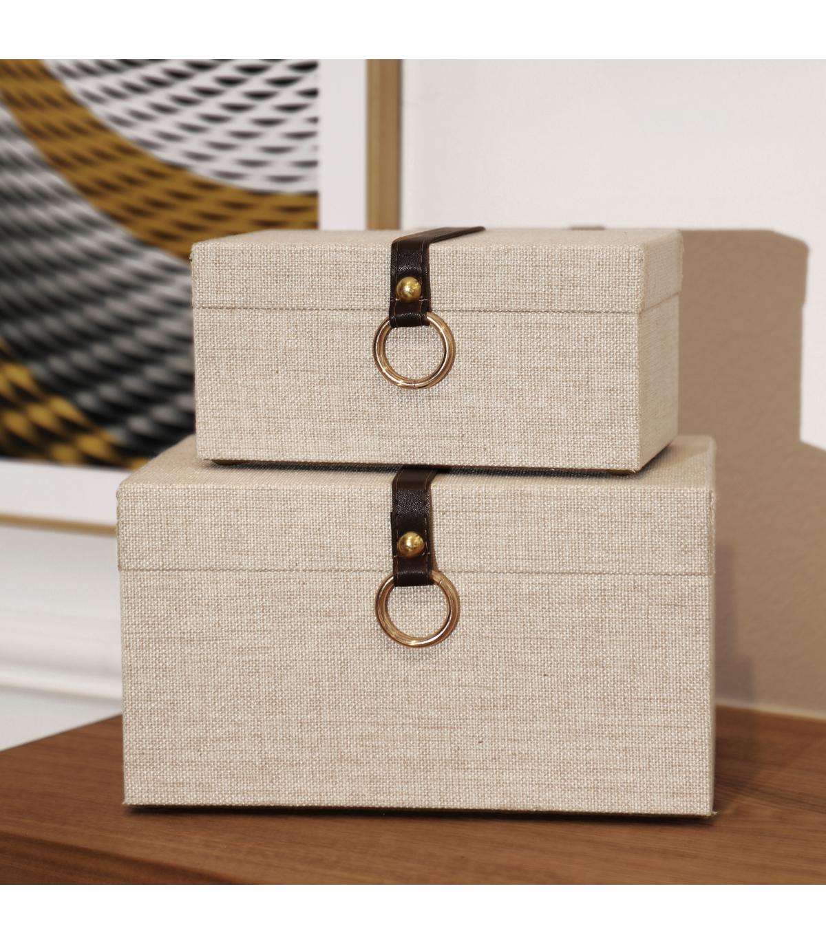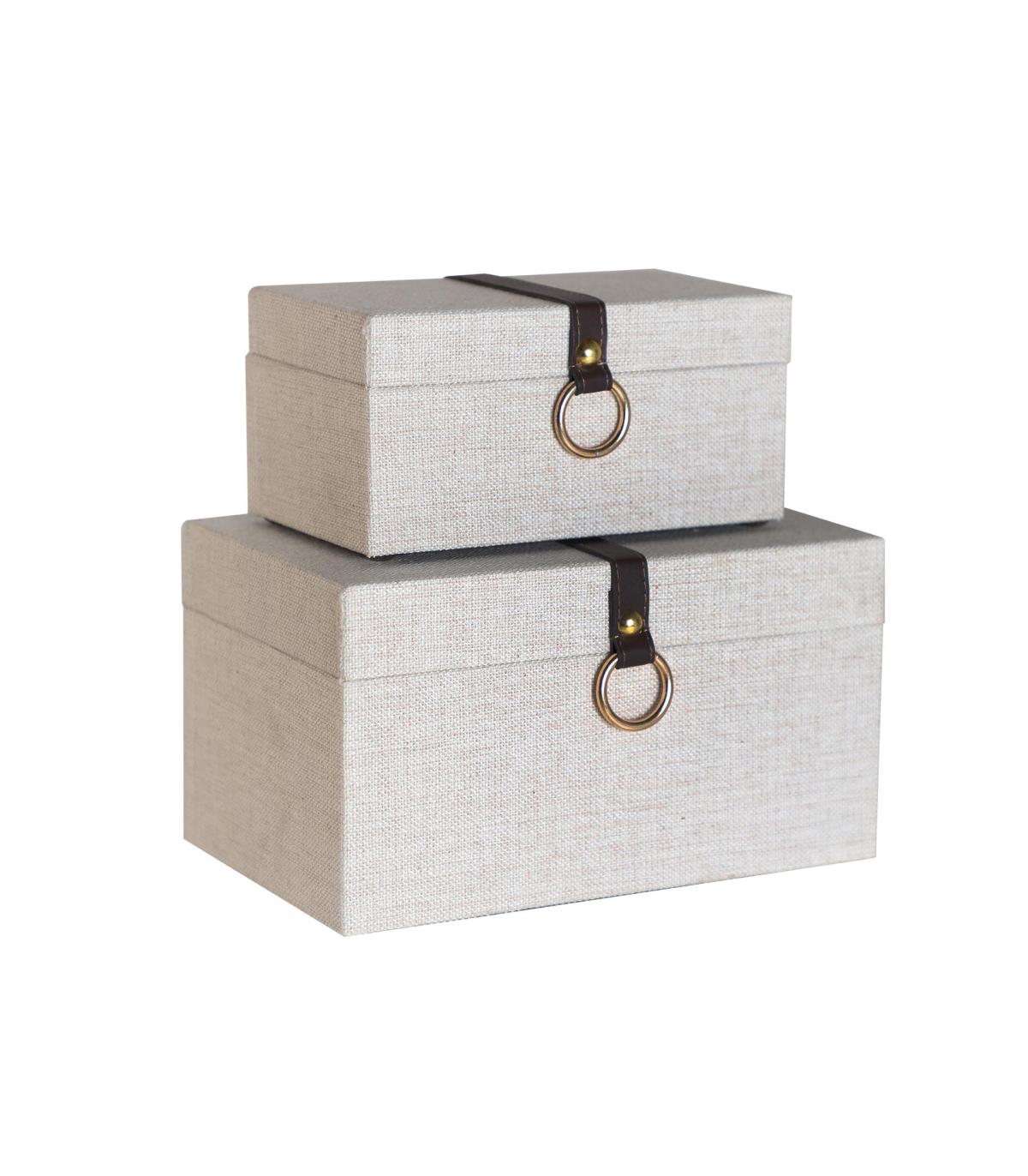 Caja j/2 rectangular pelouse de estilo colonial, fabricado en madera dm en color gris, combinado con hierro y polipiel.