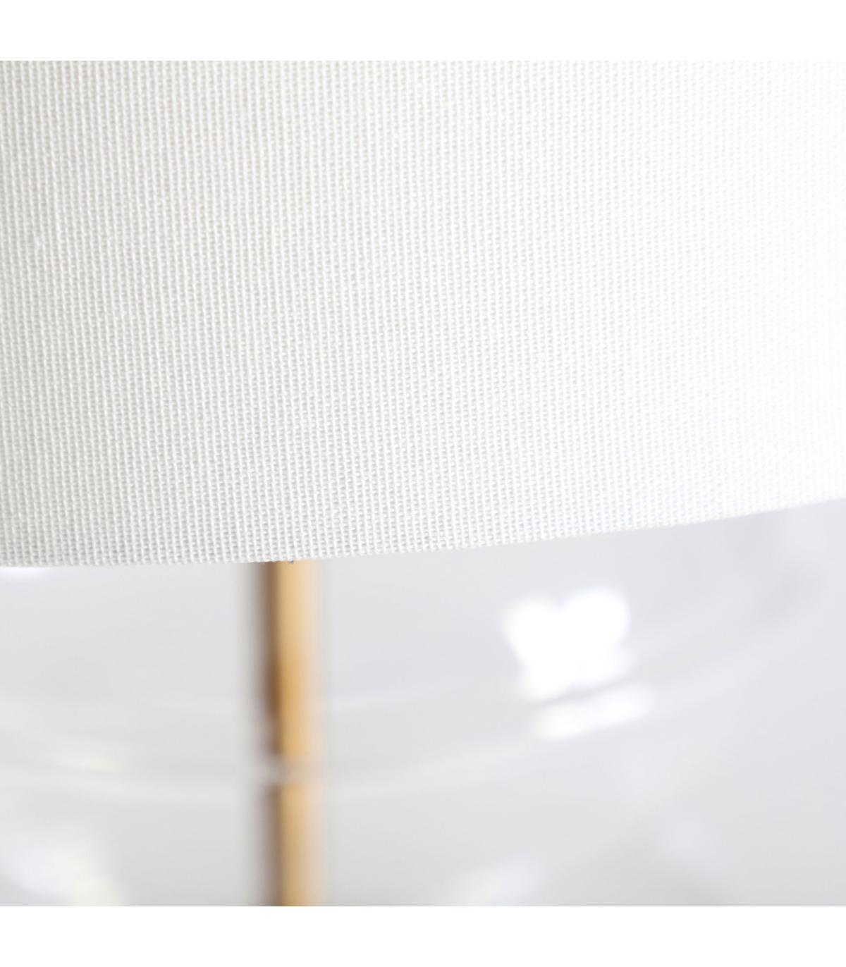 Lámpara de sobremesa de estilo clásico fabricado en hierro en color transparente combinado con cristal y lino. Producto desmontable.