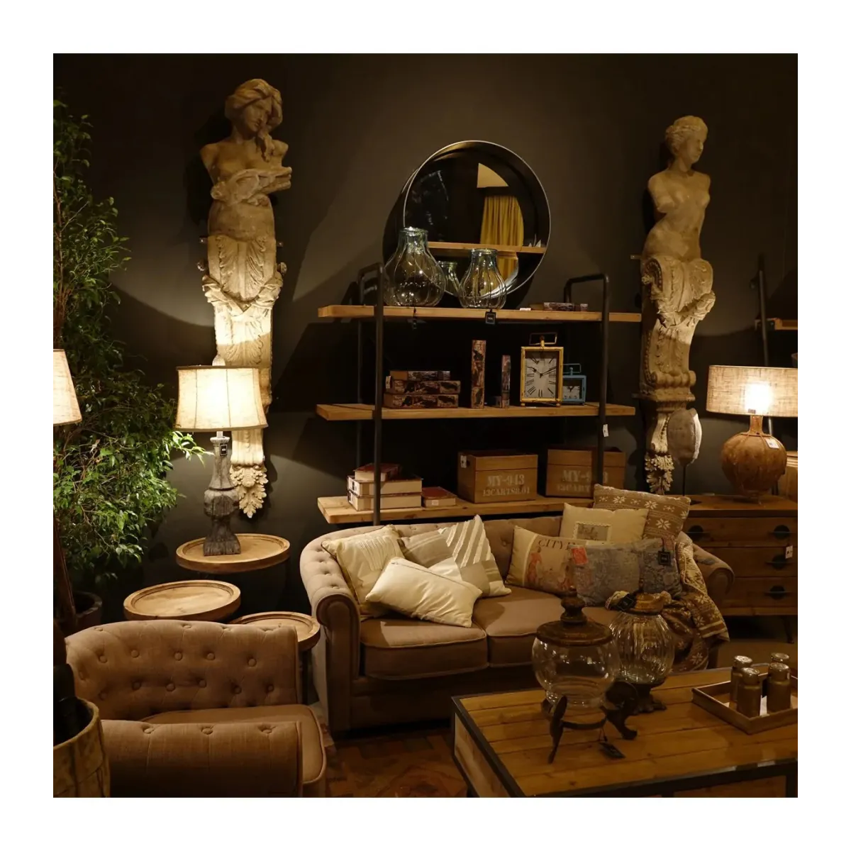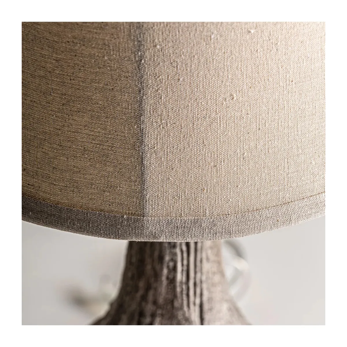 LÁMPARA DE SOBREMESA, EN COLOR MARRÓN ENVEJECIDO, DE ESTILO CONTEMPORÁNEO. FABRICADO EN RESINA, COMBINADO CON YUTE. PRODUCTO DESMONTABLE.
