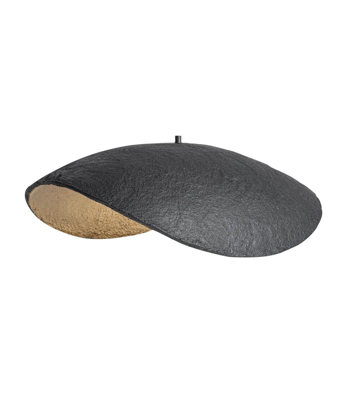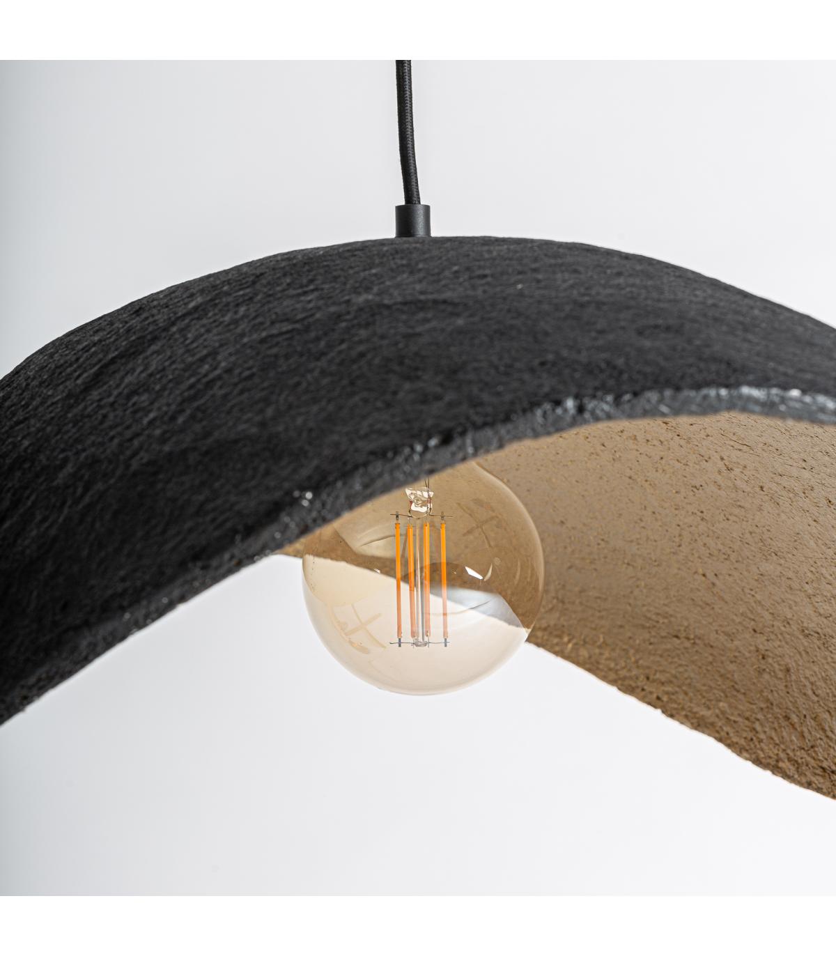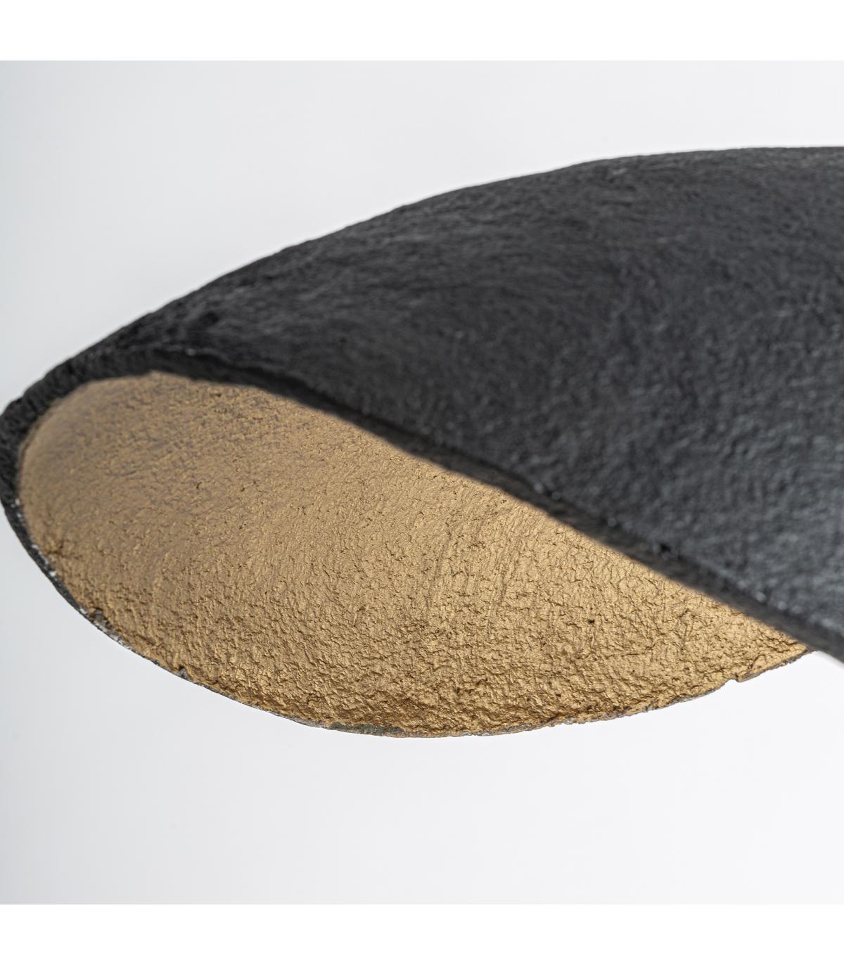 Lámpara de colgar fabricado en hierro en color negro combinado con papel maché en color bronce.