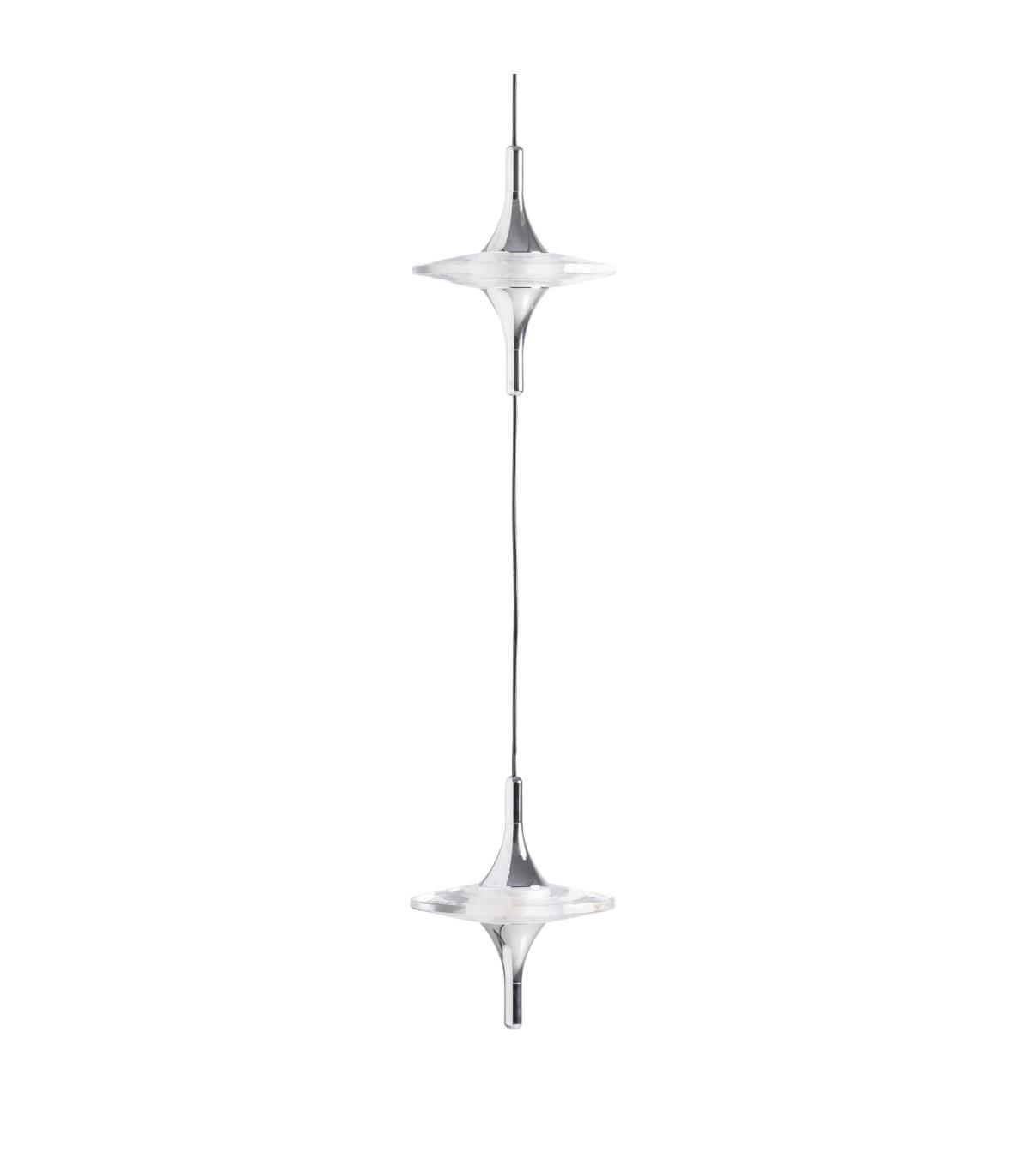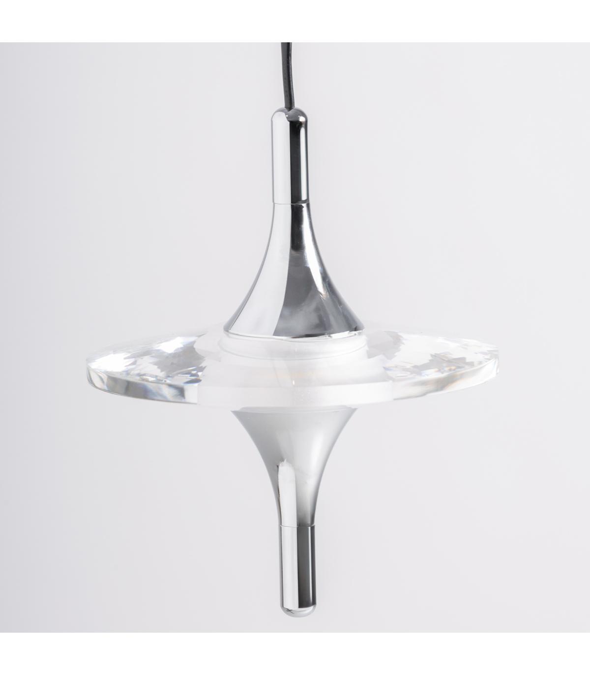 Lámpara de colgar fabricado en cristal en color transparente combinado con acero en color plata.