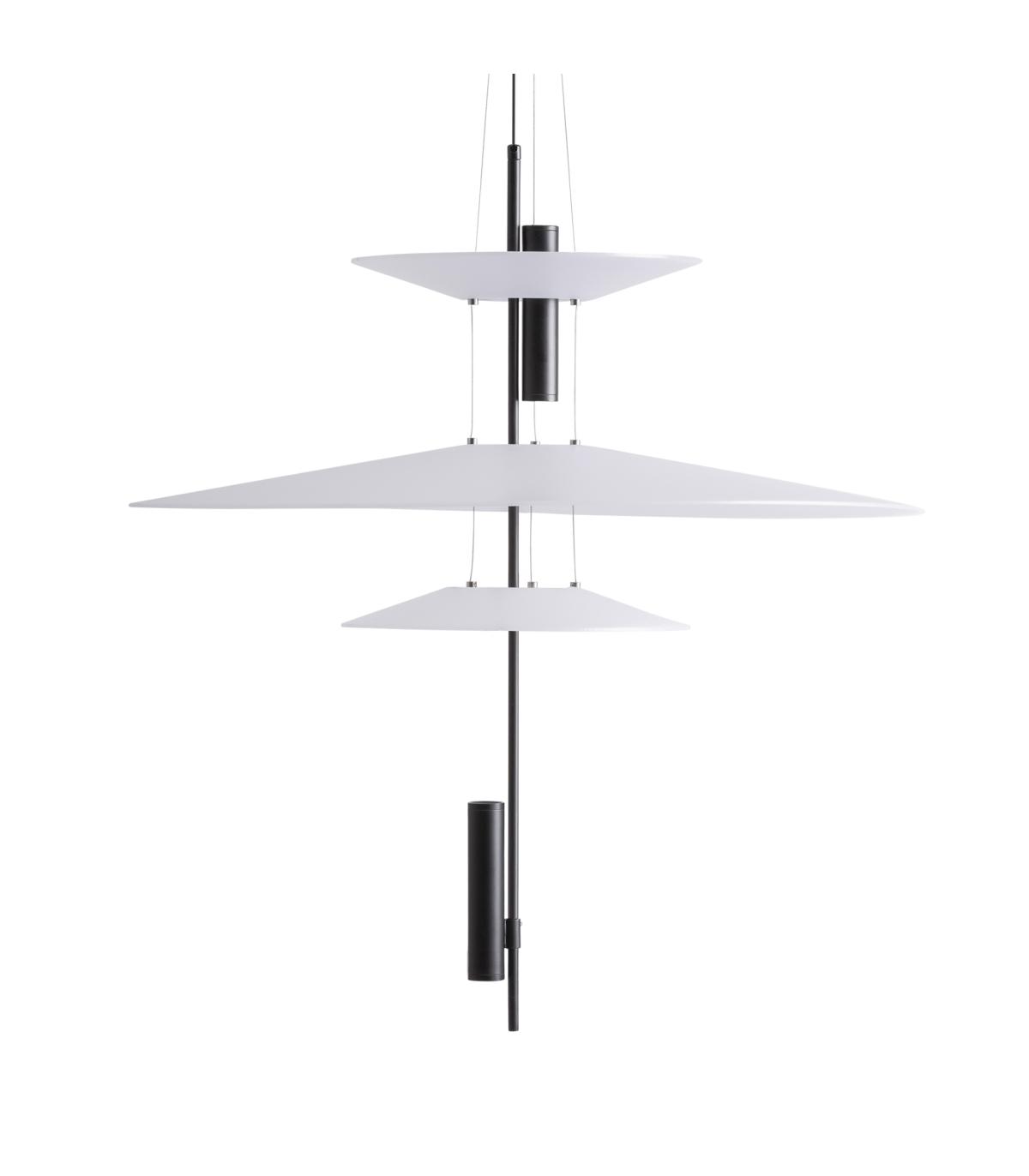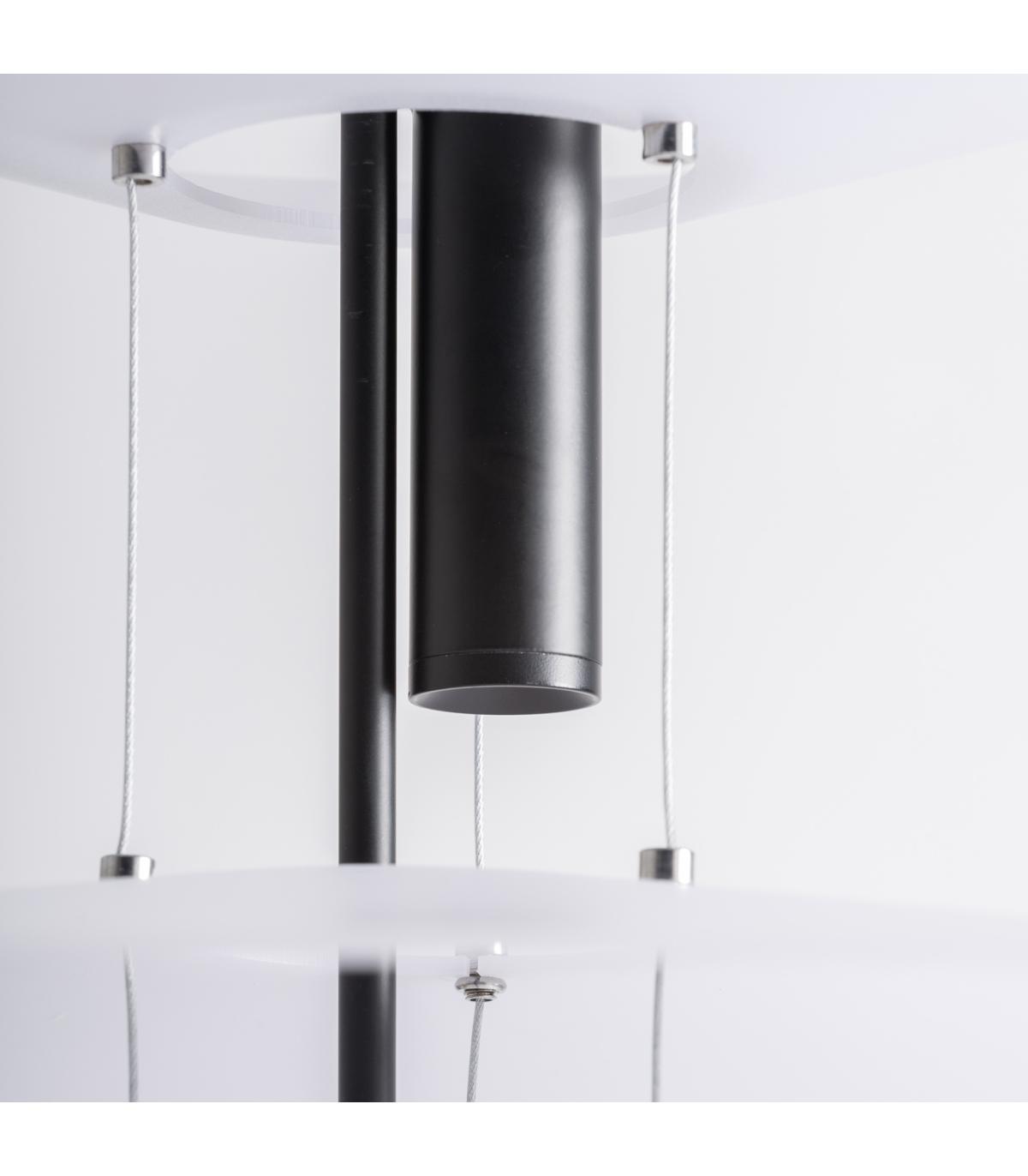 Lámpara de colgar fabricado en acrílico en color blanco combinado con acero en color negro.