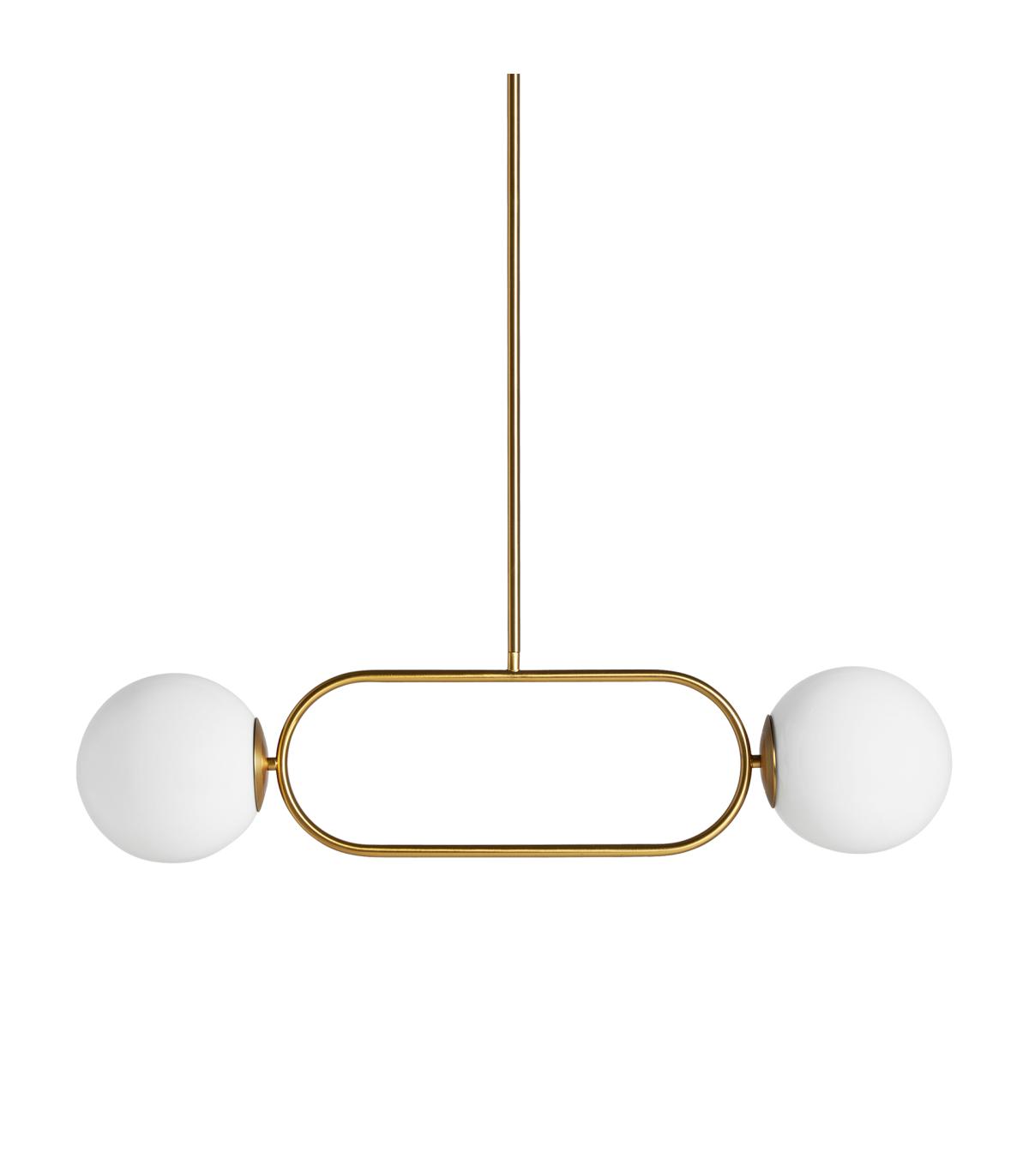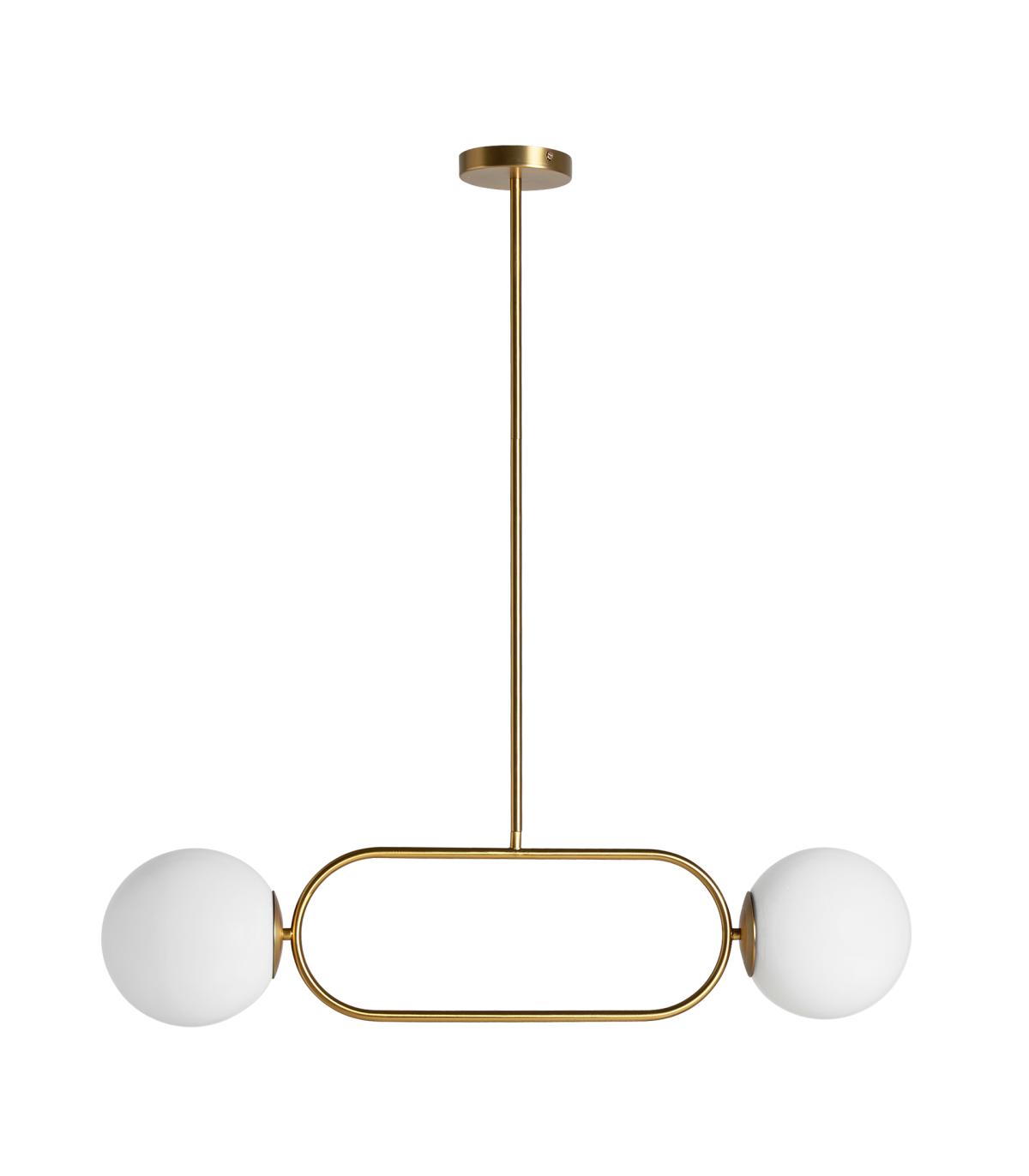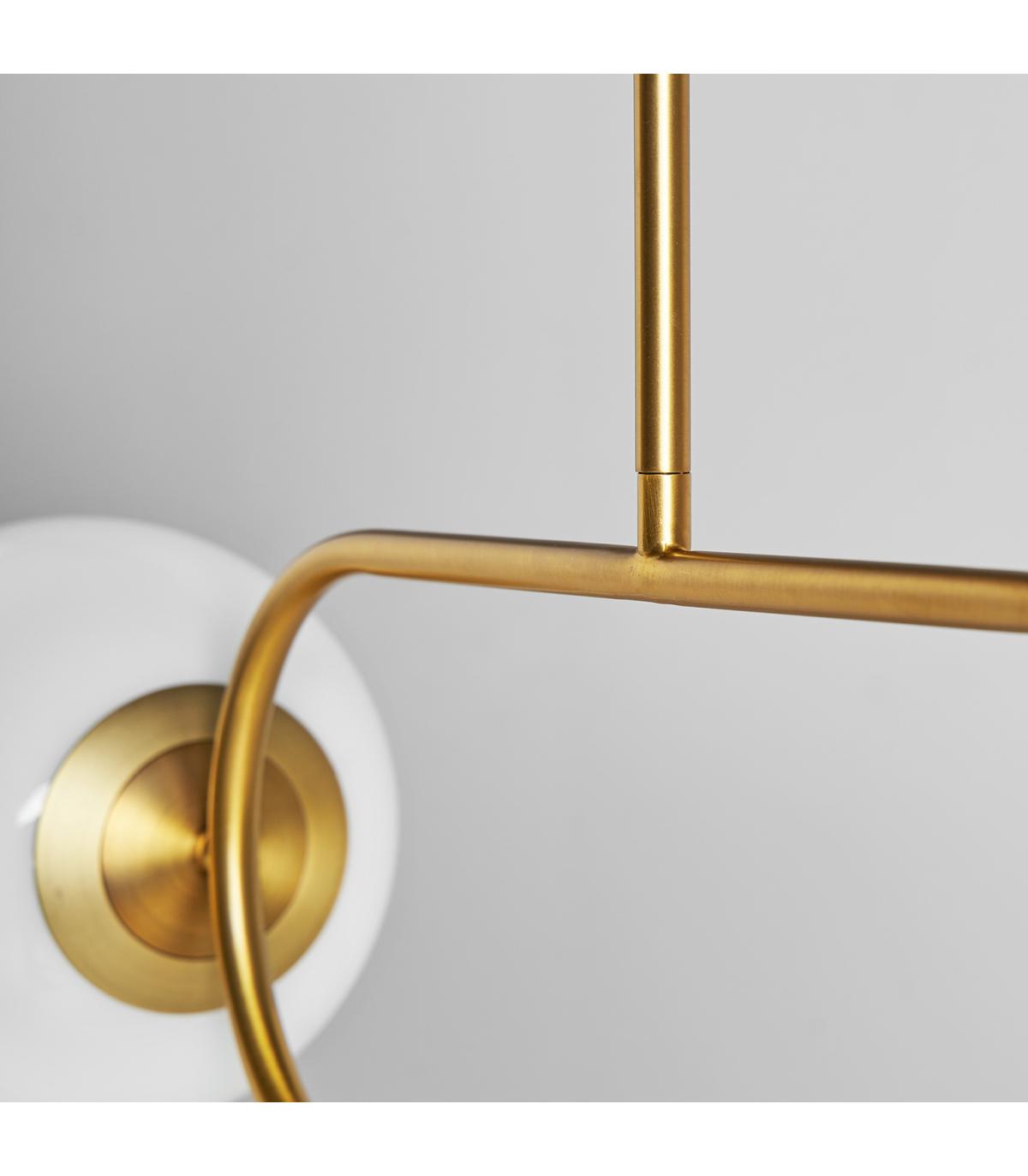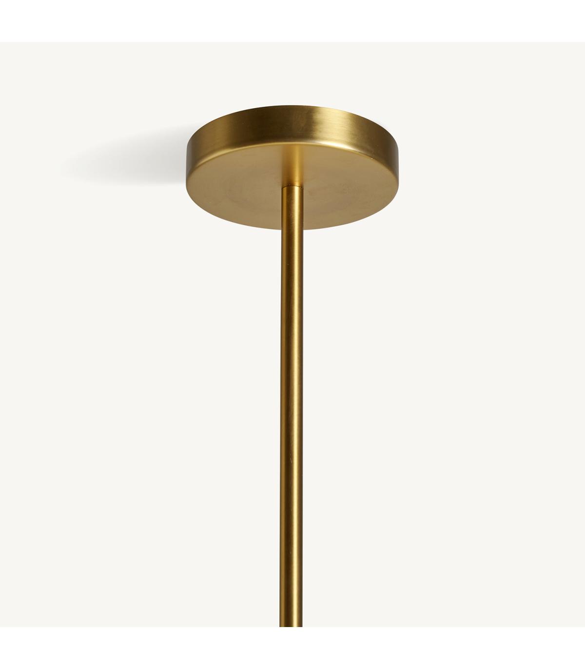Lámpara de colgar en color oro de estilo art deco. Fabricado en hierro combinado con cristal. Producto desmontable.