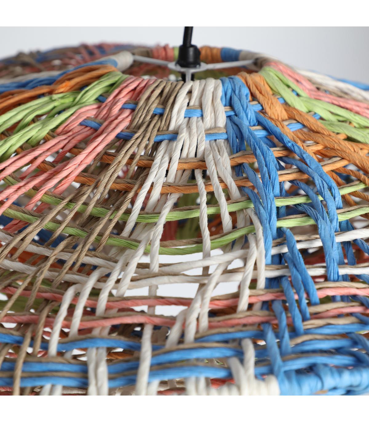 Lámpara de colgar Kalei de estilo boho, fabricado en rafia en color multicolor, combinado con hierro en color negro.