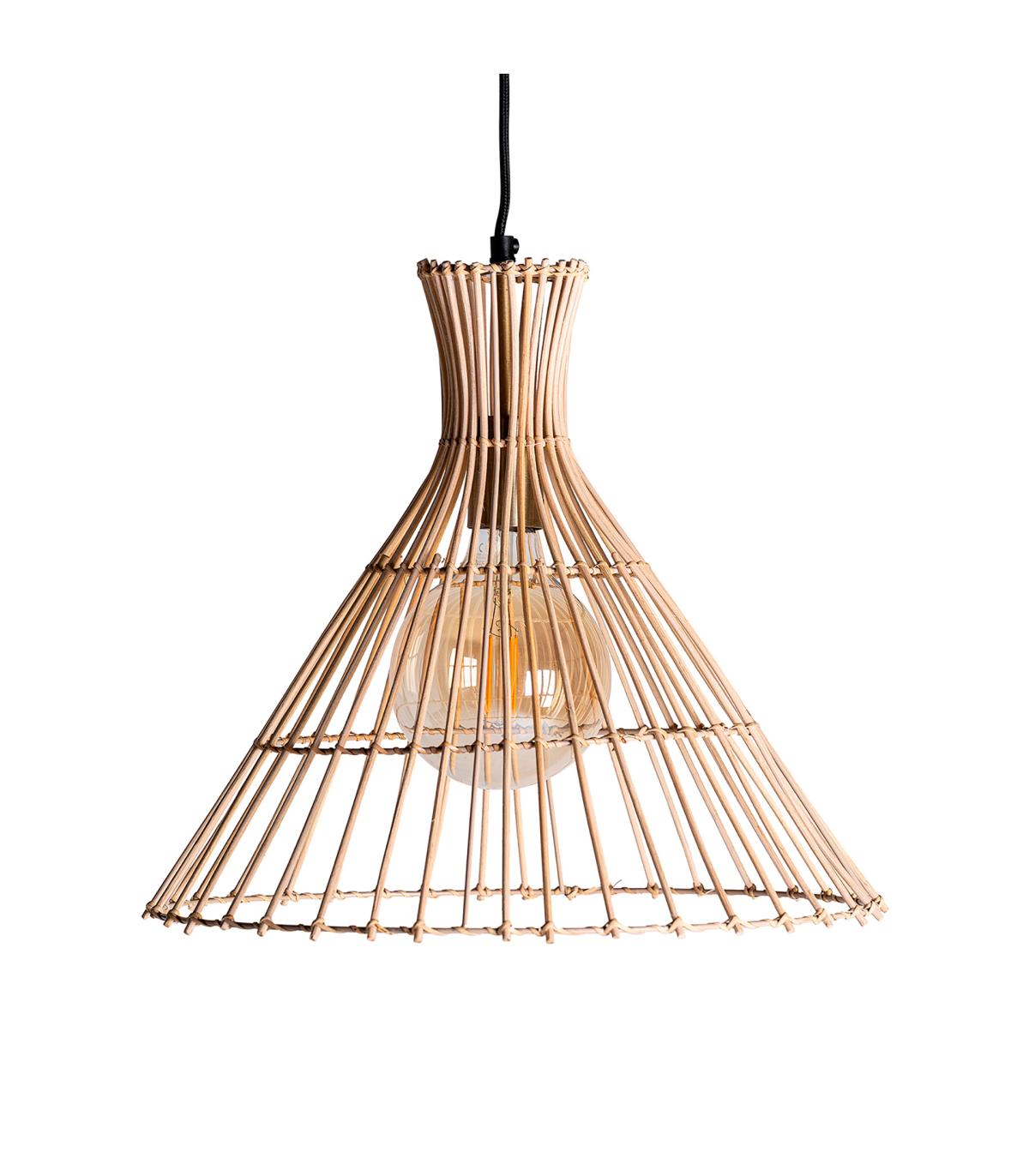 Lámpara de colgar redonda arteaga de estilo contemporáneo, fabricado en ratán en color marrón, combinado con hierro en color negro.