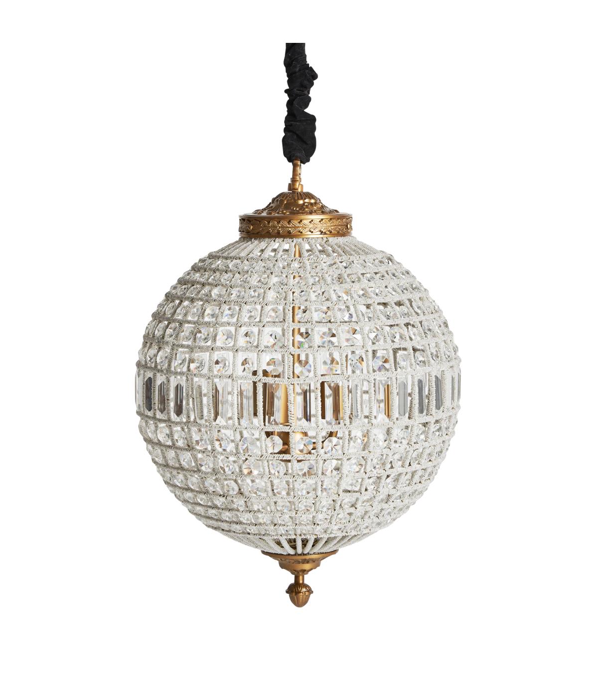 Lámpara de colgar en color transparente de estilo art deco. Fabricado en latón combinado con cristal y aluminio.