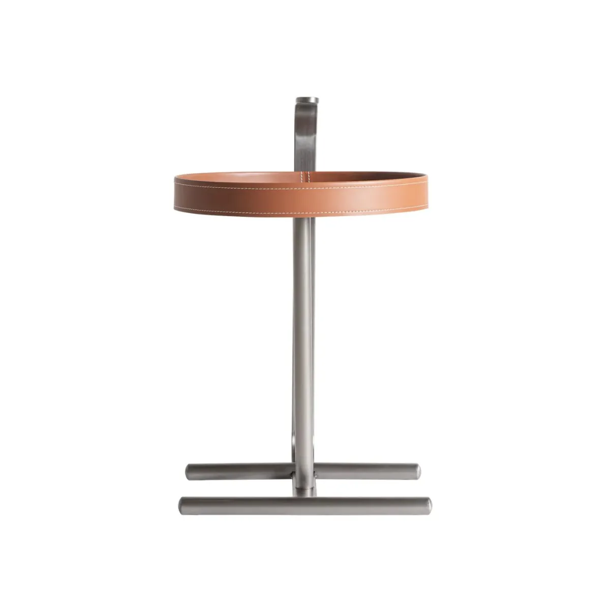 Mesa auxiliar geisingen, en color marrón/plata, de estilo art deco. Fabricado en acero inoxidable.