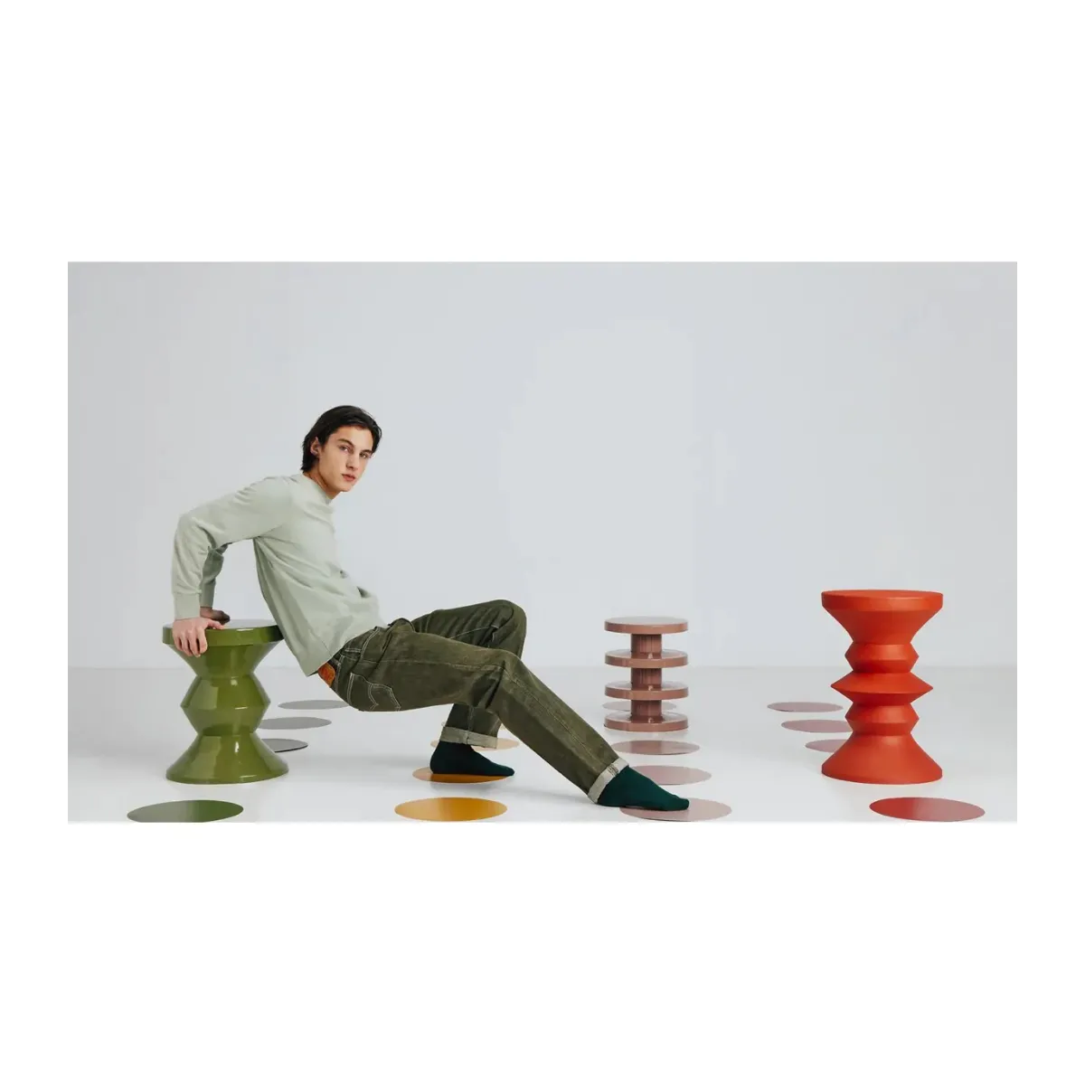 Mesa auxiliar irregular zug de estilo contemporáneo, fabricado en hierro en color verde.