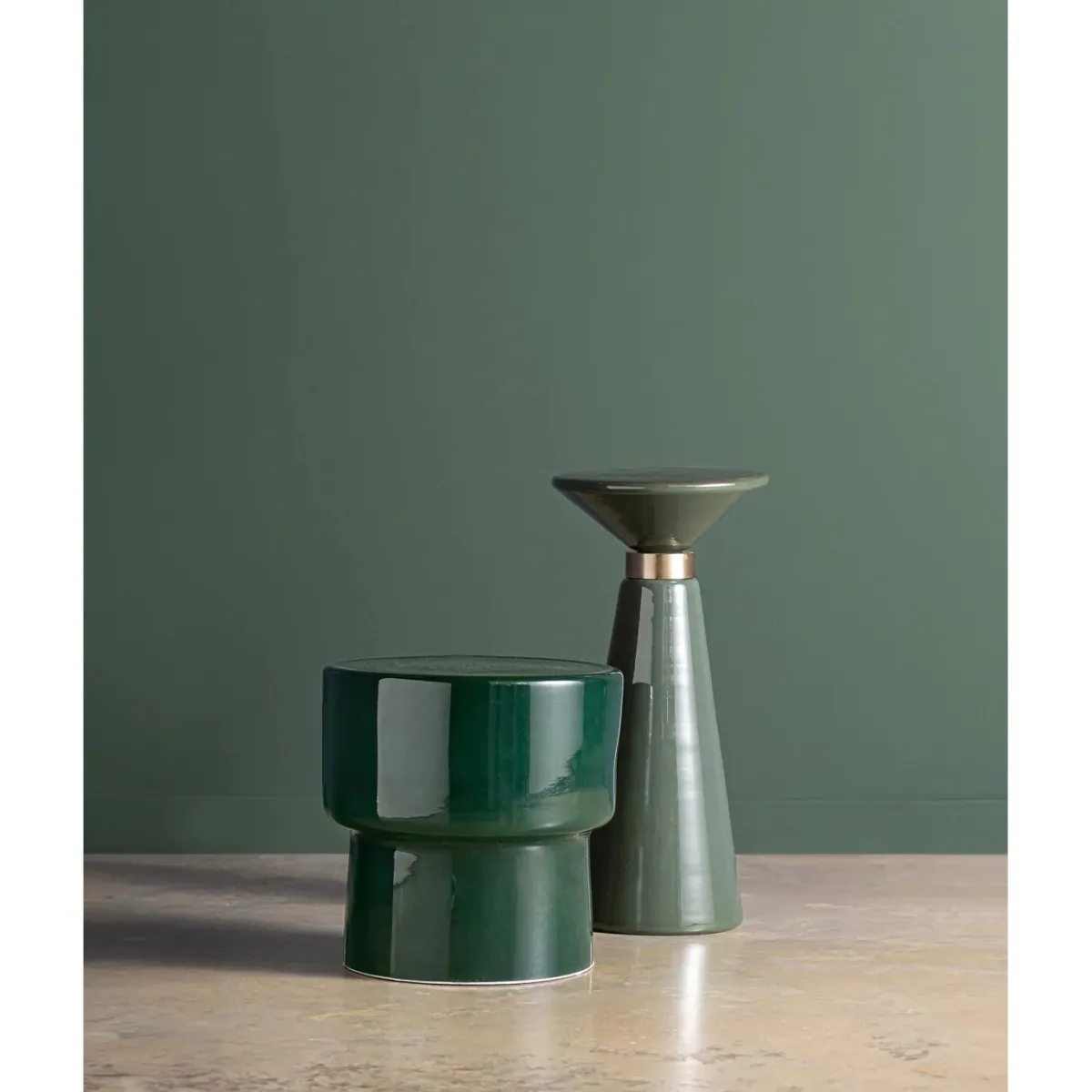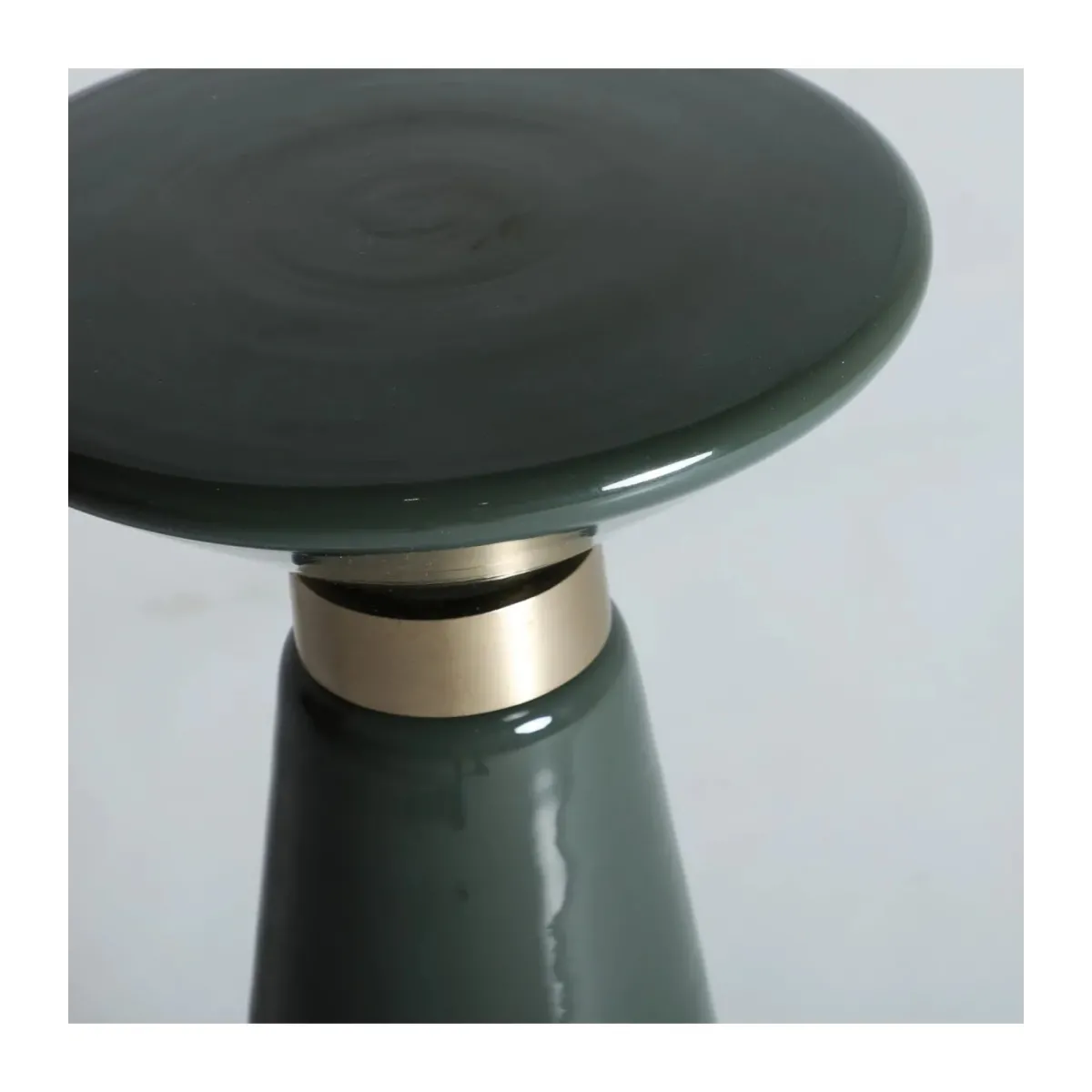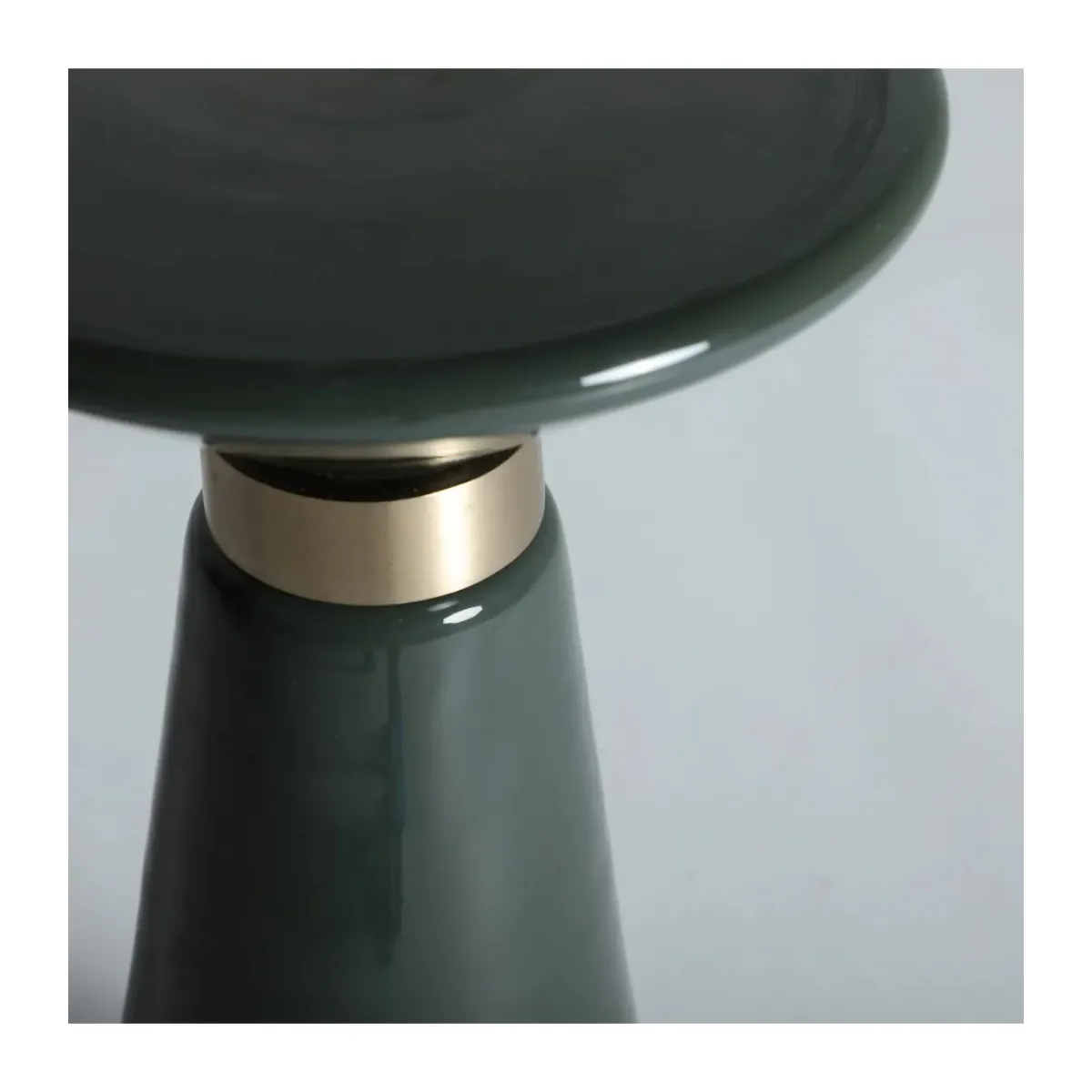Mesa auxiliar Cassis de estilo contemporáneo, fabricado en vidrio en color verde con acabado brillo en color dorado.