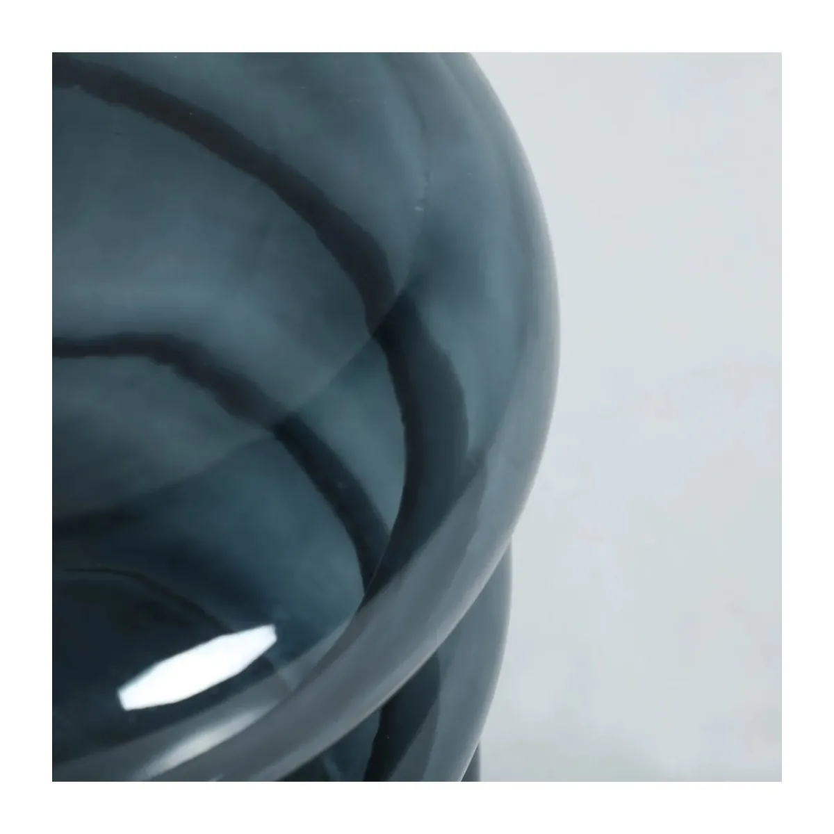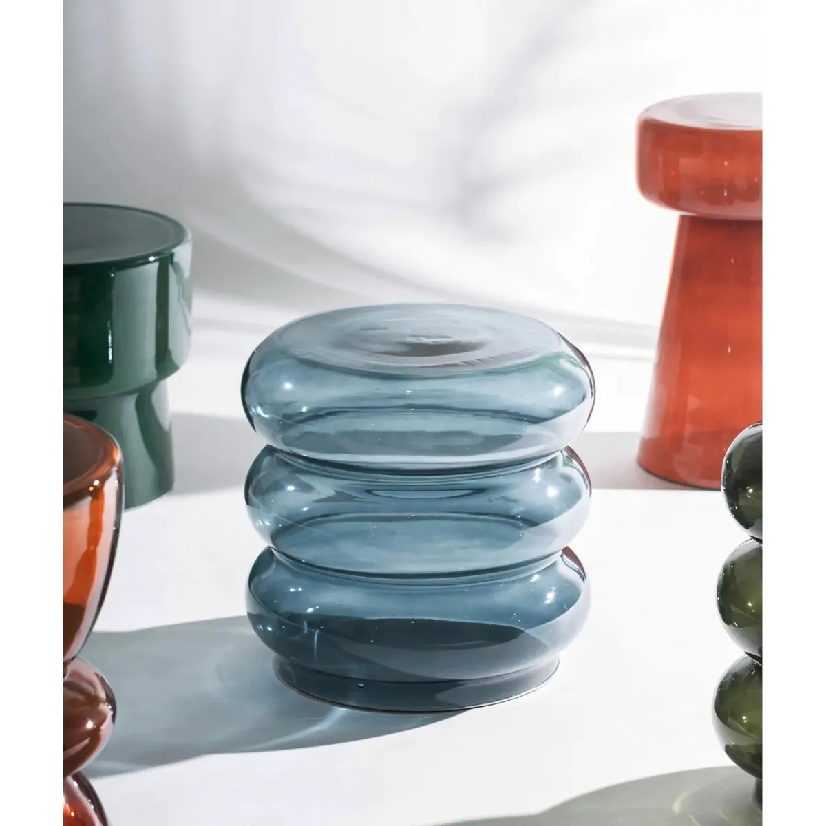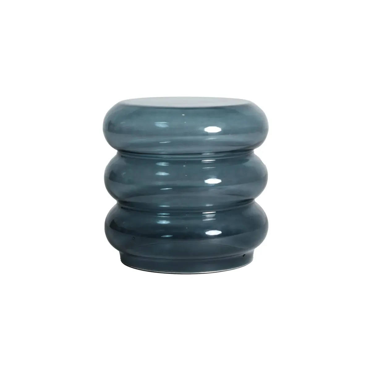Mesa auxiliar Kotor de estilo contemporáneo, fabricado en vidrio en color azul con acabado traslúcido.