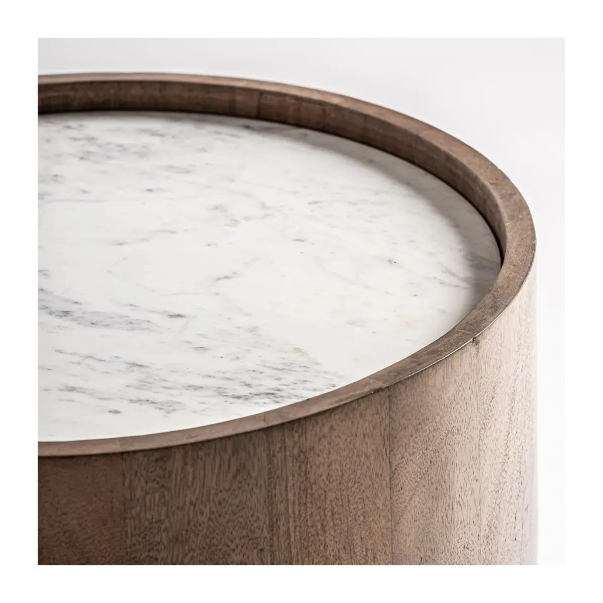 Mesa auxiliar arneke de estilo art deco fabricado en madera de mango en color marrón combinado con mármol en color blanco.