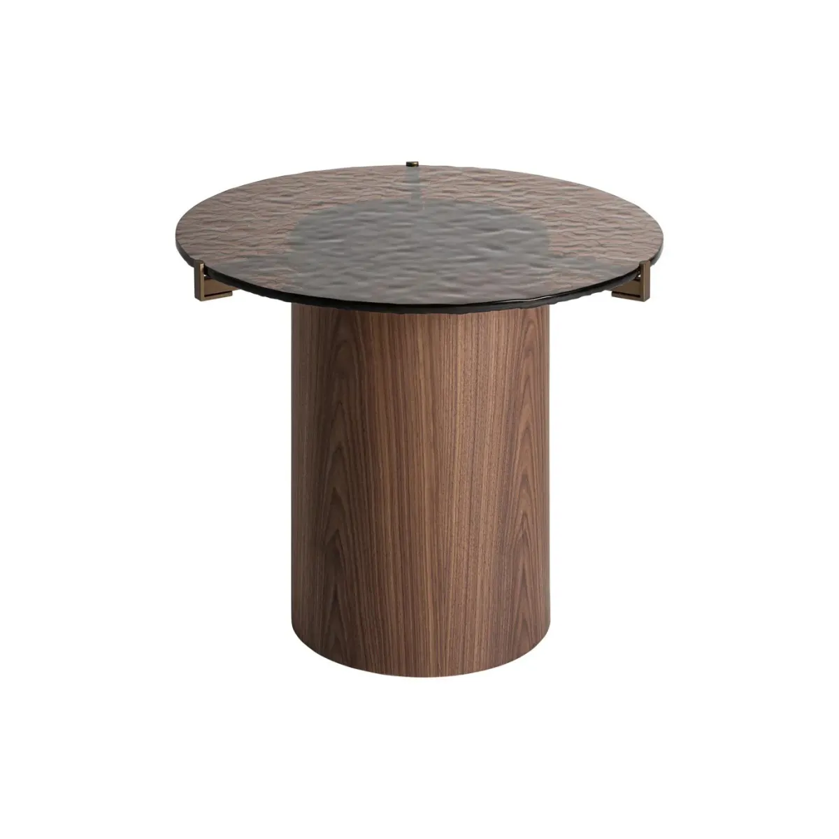 Mesa auxiliar giswil de estilo art deco. Fabricado en madera contrachapada en color marrón combinado con cristal en color marrón. Producto desmontable.