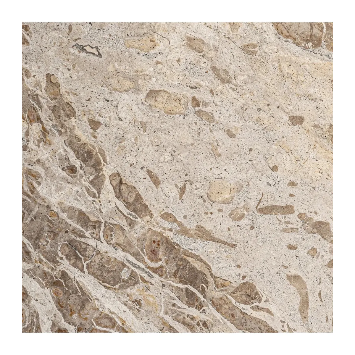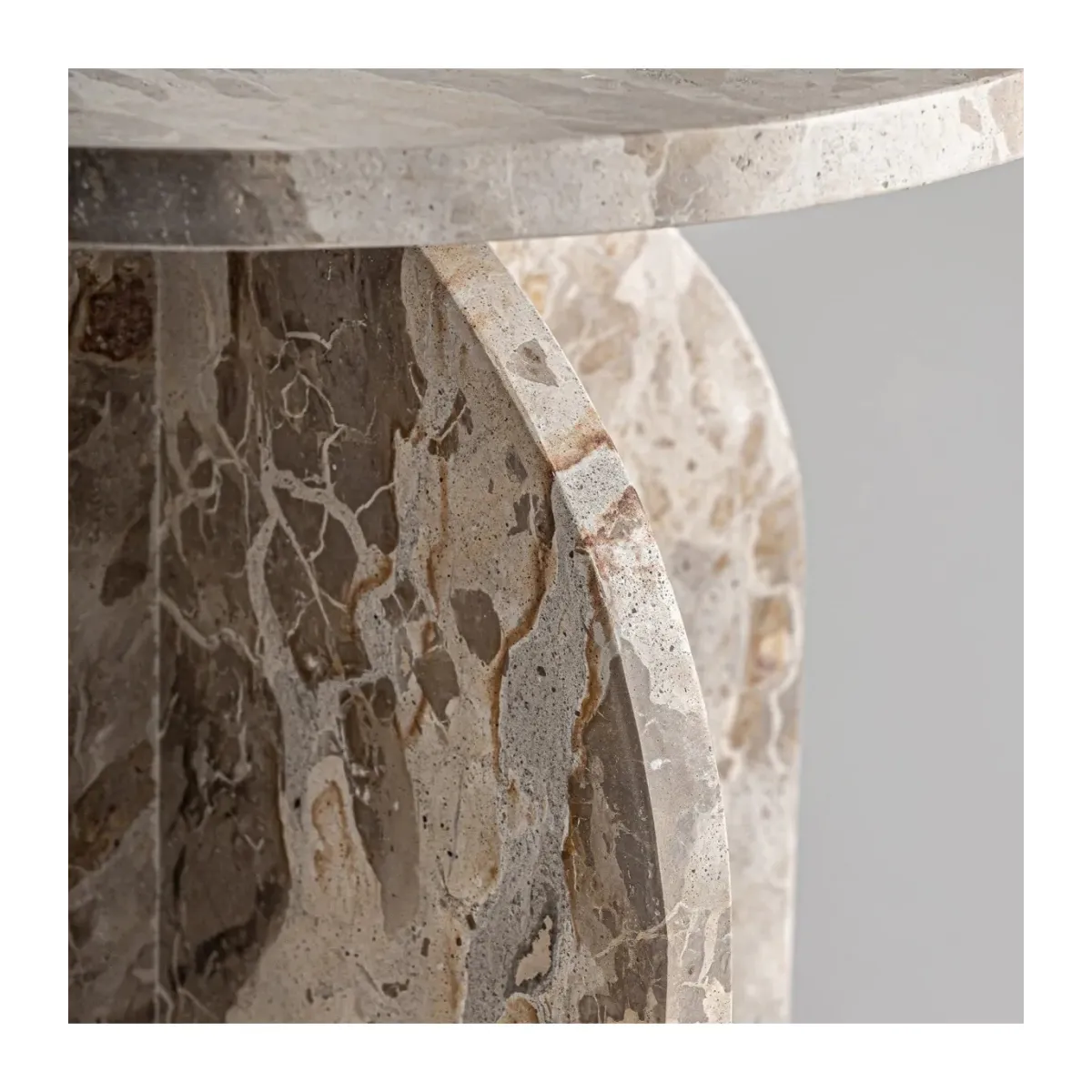 Mesa auxiliar Alessano de estilo art deco fabricado en mármol en color beige.