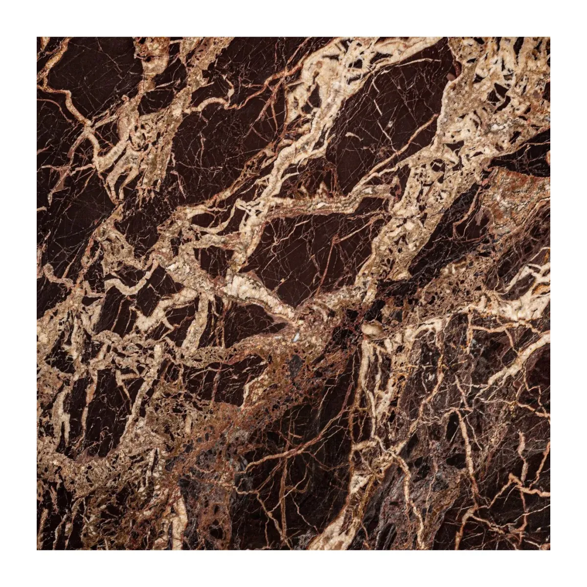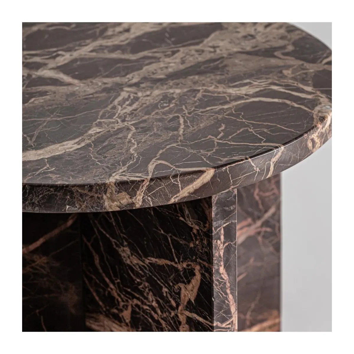 Mesa auxiliar Ruskeala de estilo contemporáneo fabricado en mármol en color tonos oscuros en color dorado.