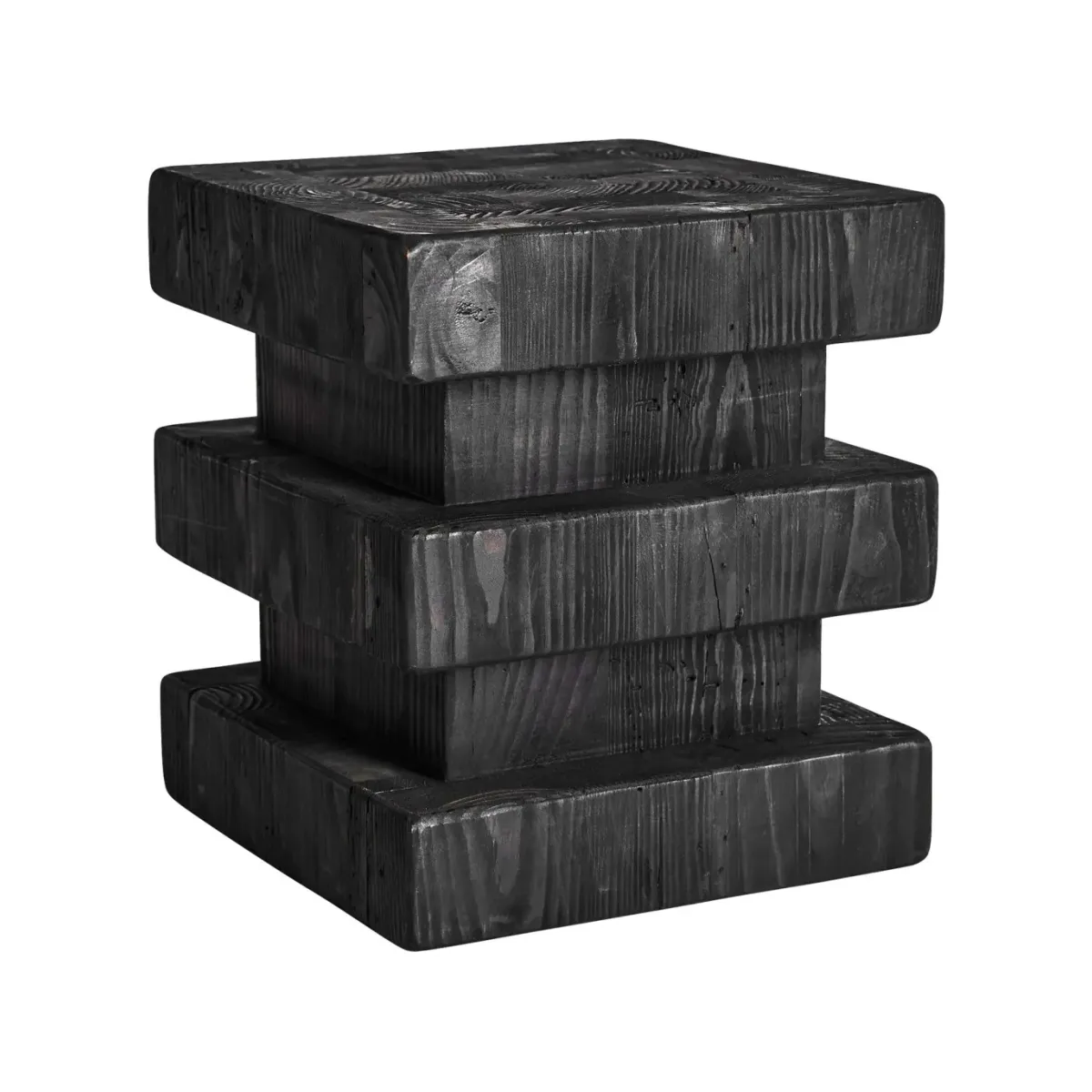 Taburete vievy en color negro de estilo art deco. Fabricado en madera de pino reciclado.