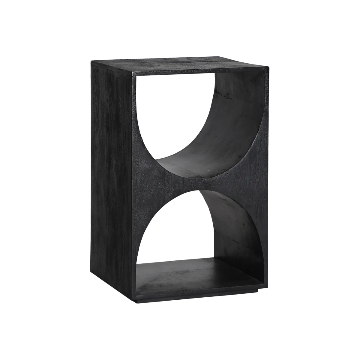 Mesa auxiliar cuadrada kirila de estilo contemporáneo, fabricado en madera de mango en color negro.
