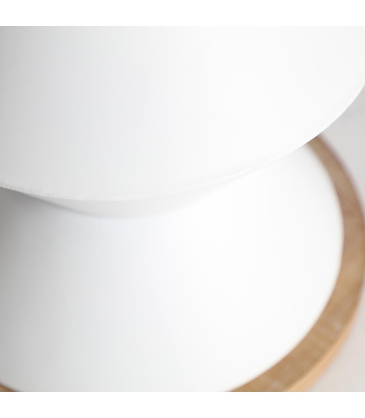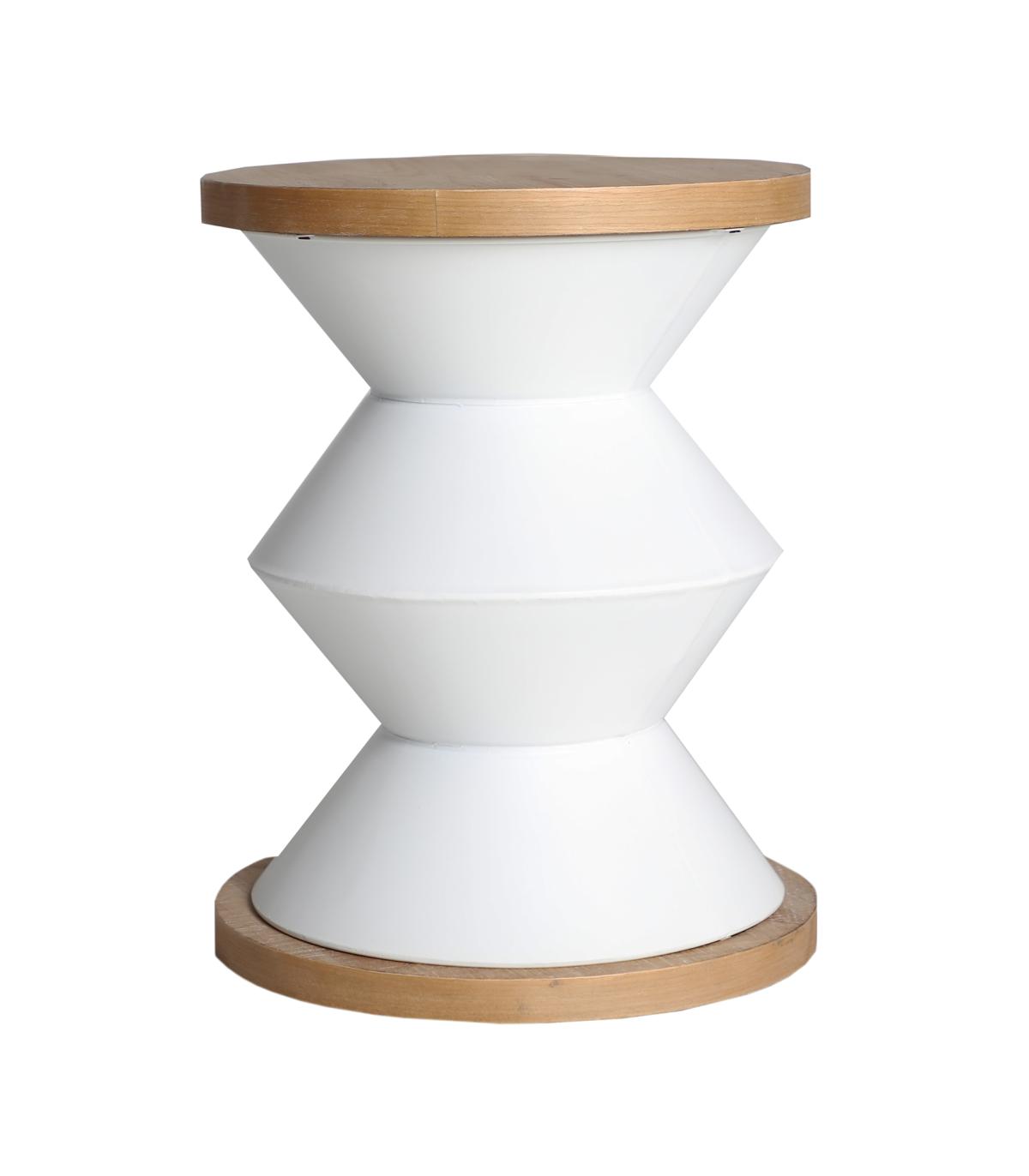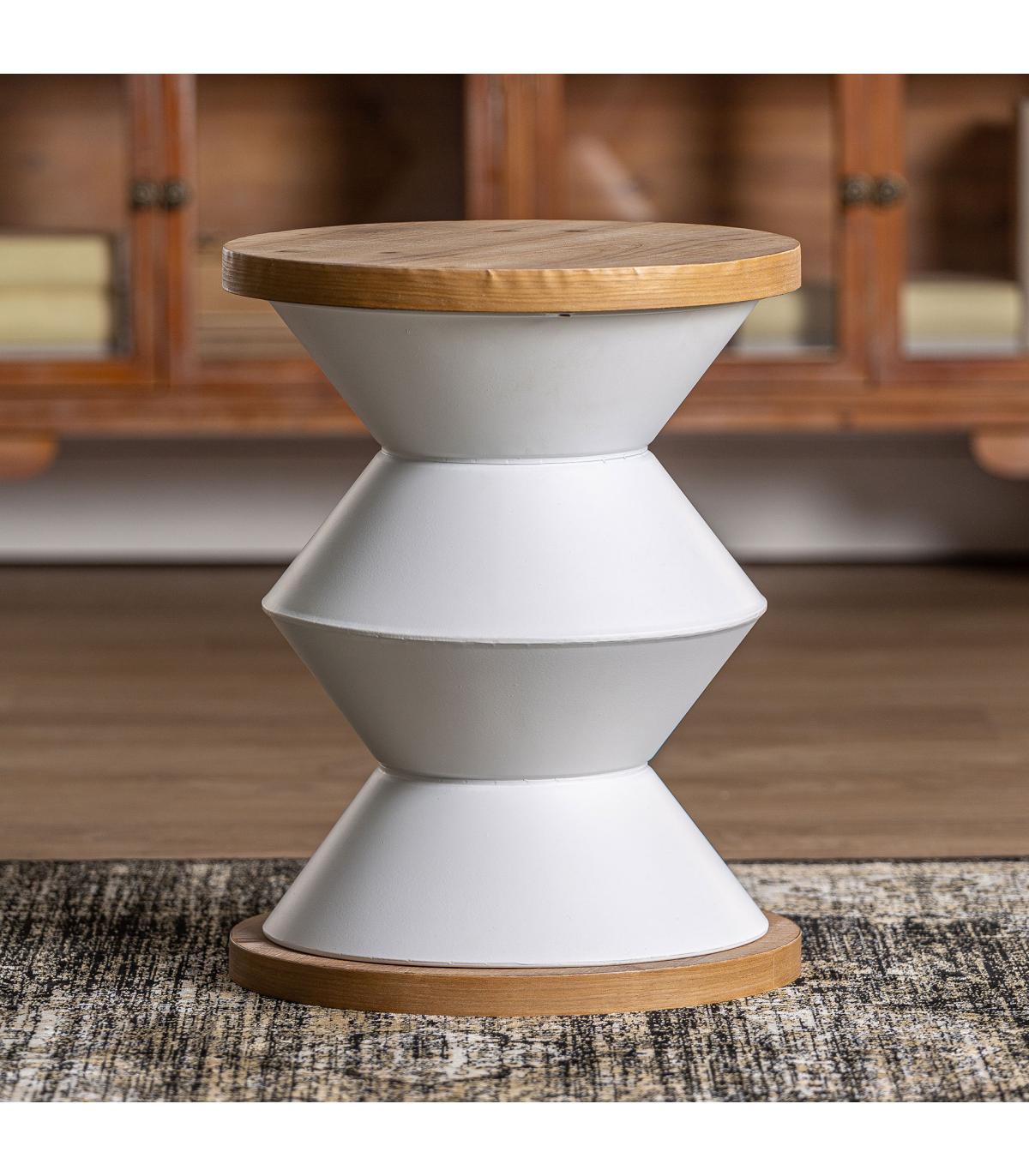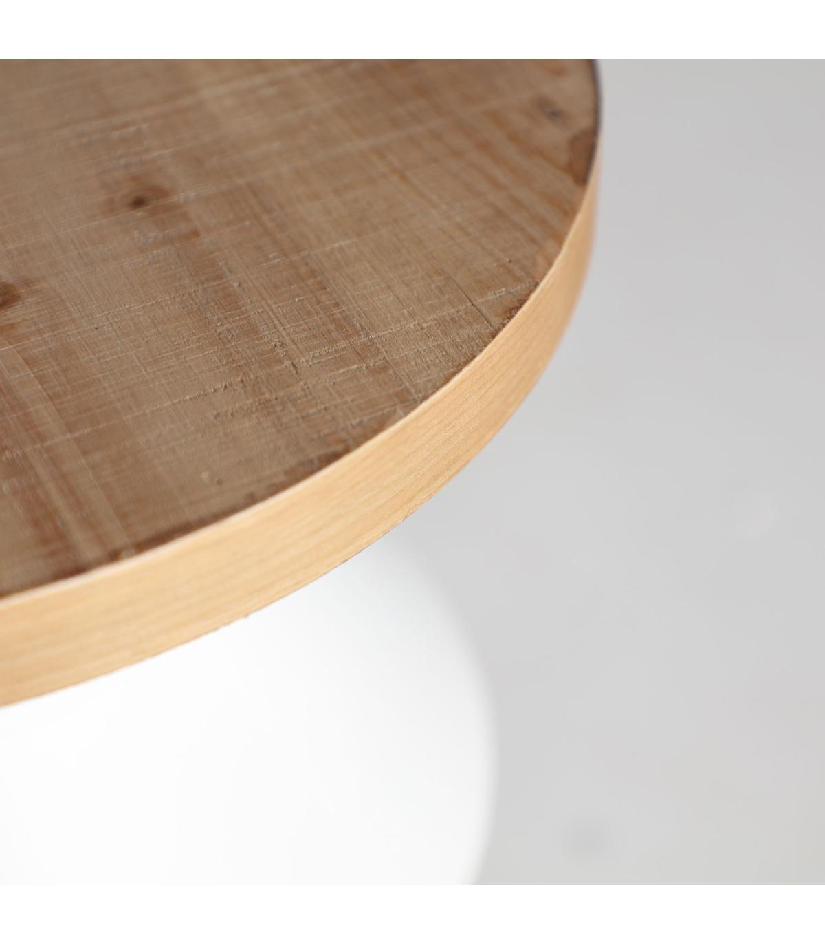 Mesa auxiliar redonda moriat de estilo contemporáneo, fabricado en madera dm en color blanco, combinado con hierro en color natural.