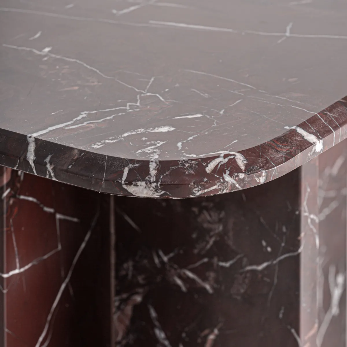 Mesa auxiliar Bourg de estilo contemporáneo fabricado en mármol en color burdeos con acabado brillo.