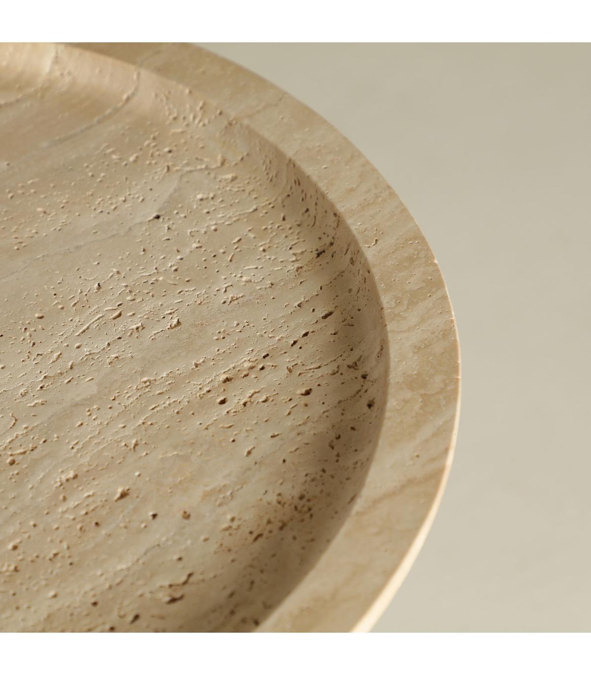 Mesa auxiliar redonda videix de estilo art deco, fabricado en madera abedul en color marrón, combinado con mármol en color beige. Producto desmontable.