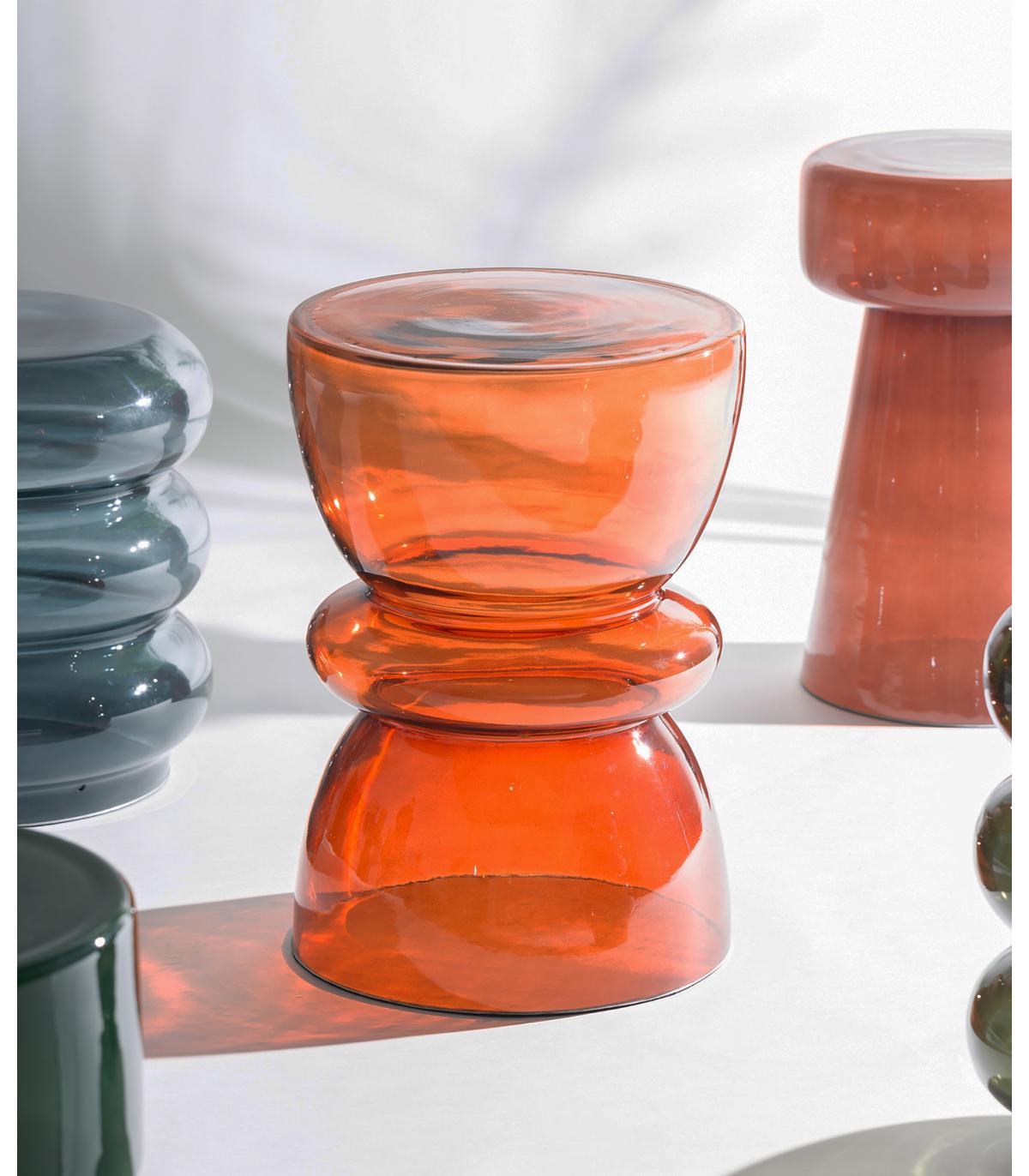 Mesa auxiliar Rustrel de estilo contemporáneo, fabricado en vidrio en color naranja con acabado traslúcido.