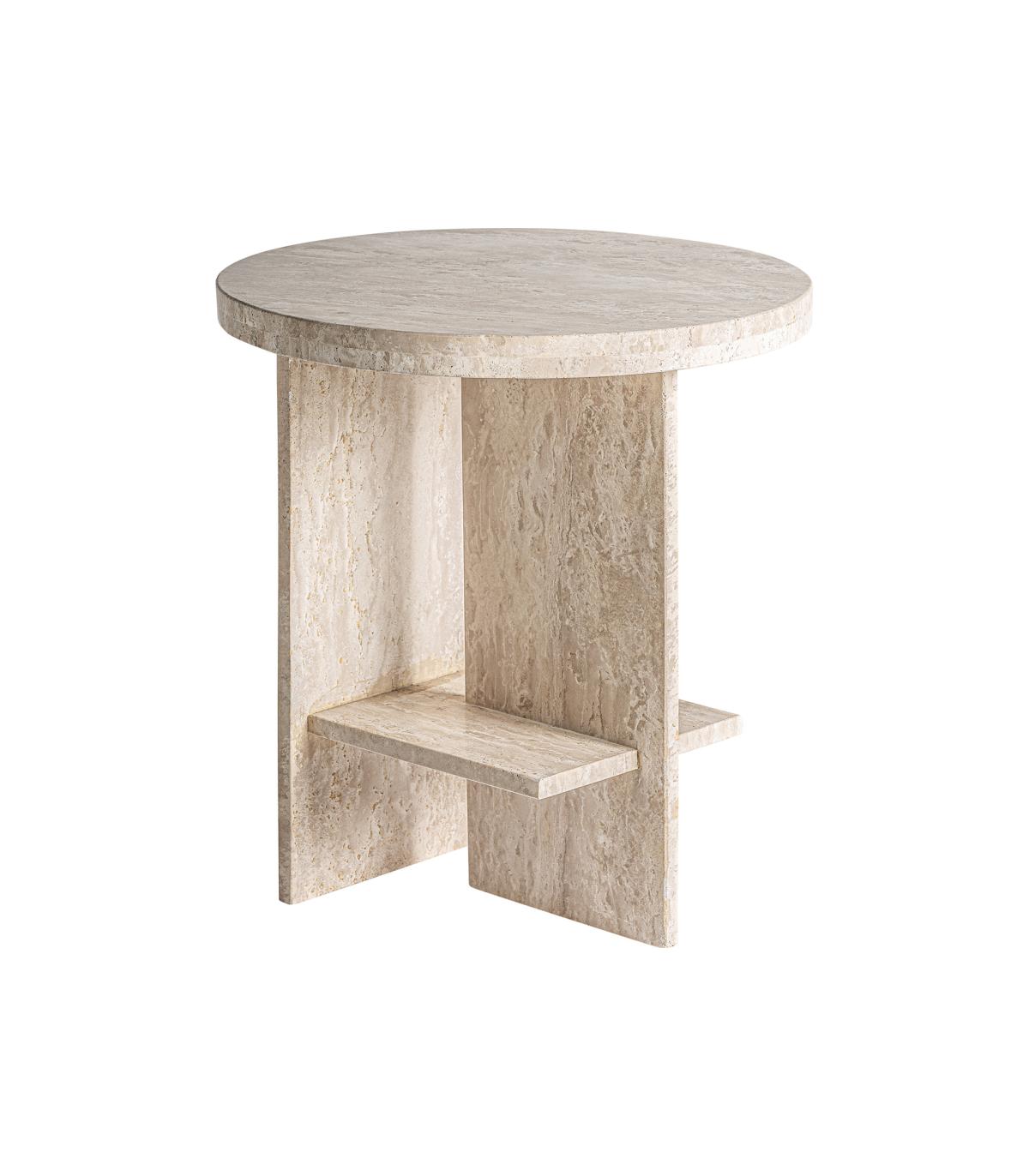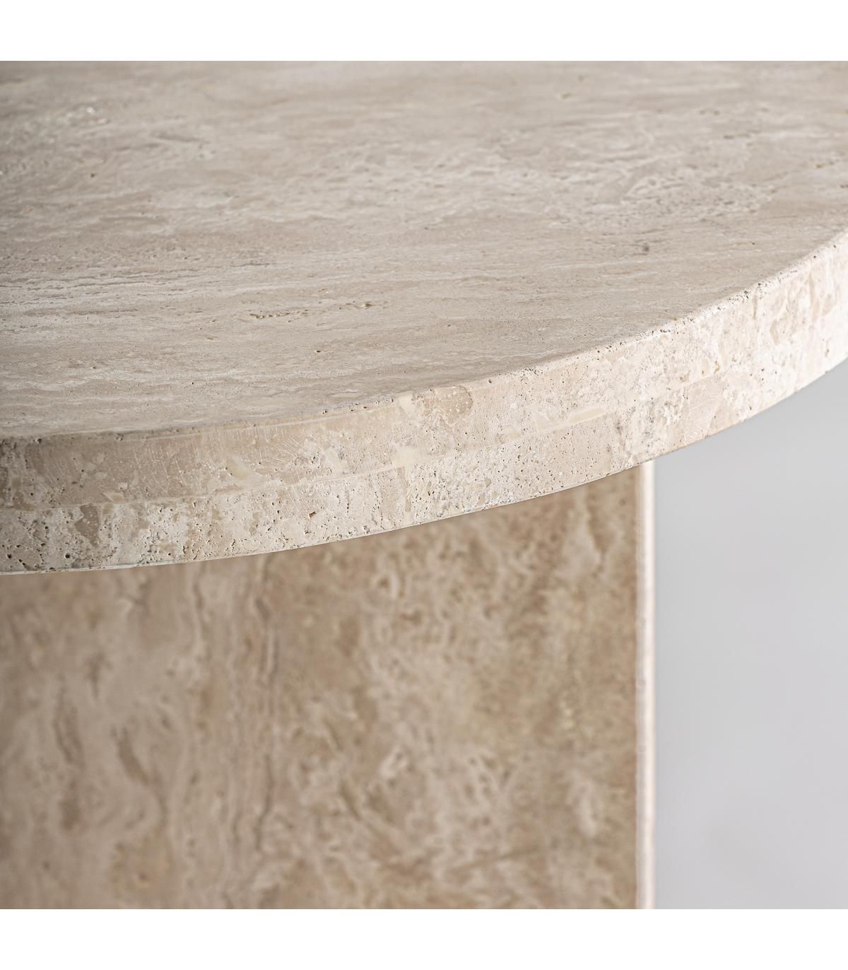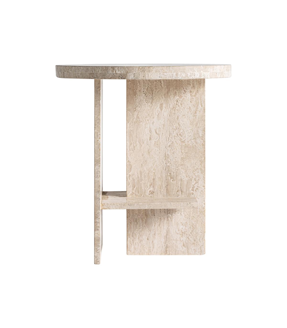 Mesa auxiliar Thiennes de estilo art deco fabricado en travertino en color beige.